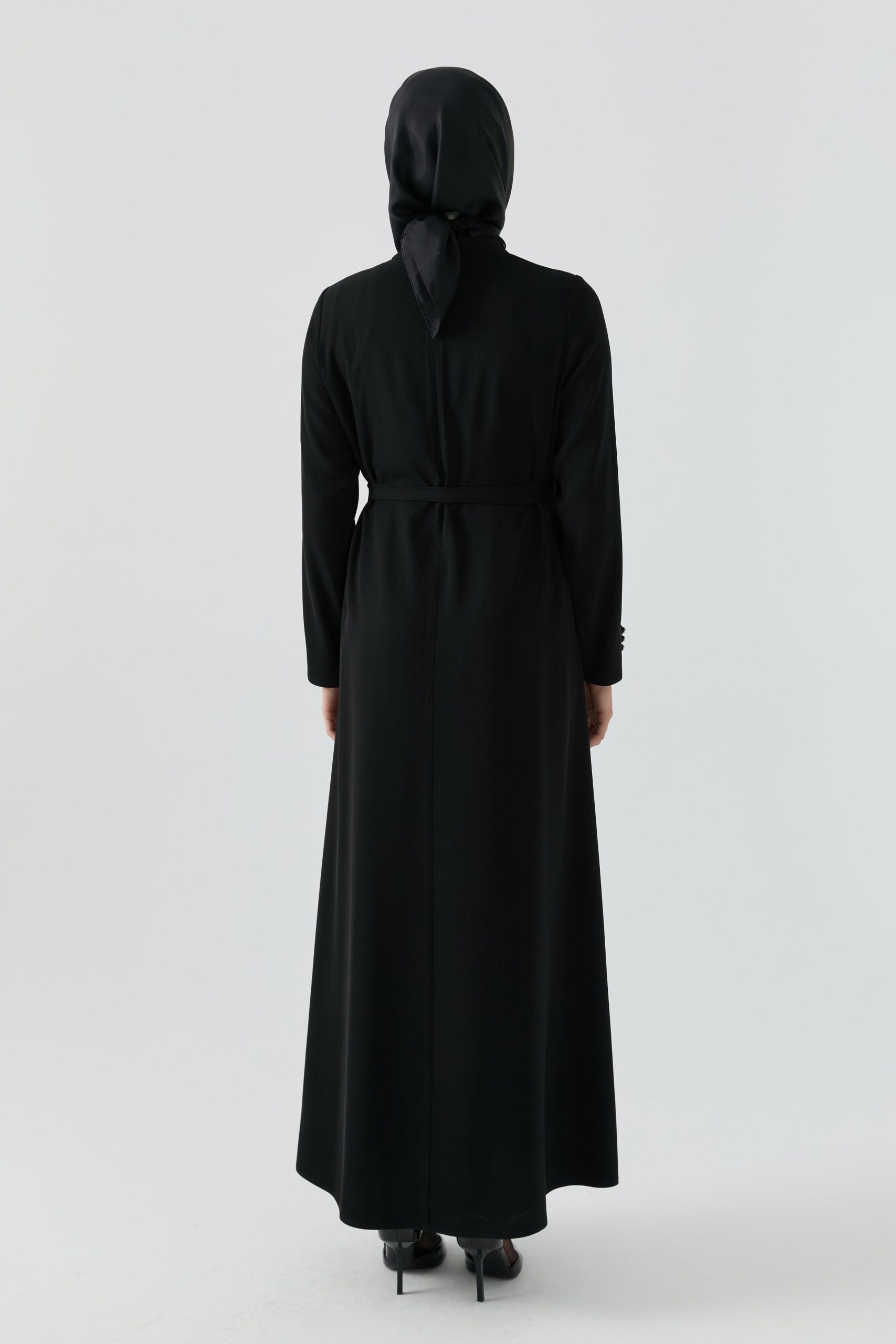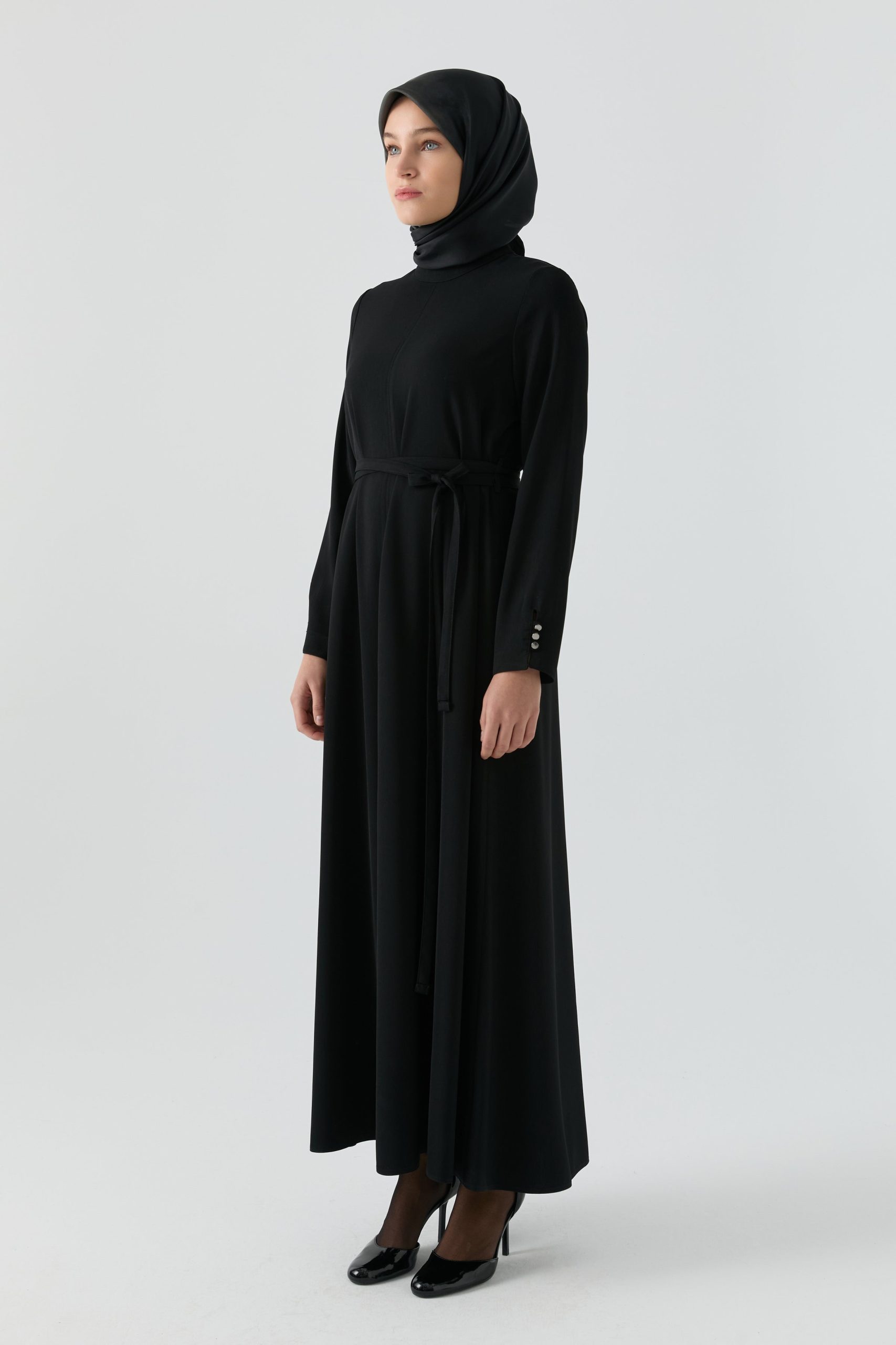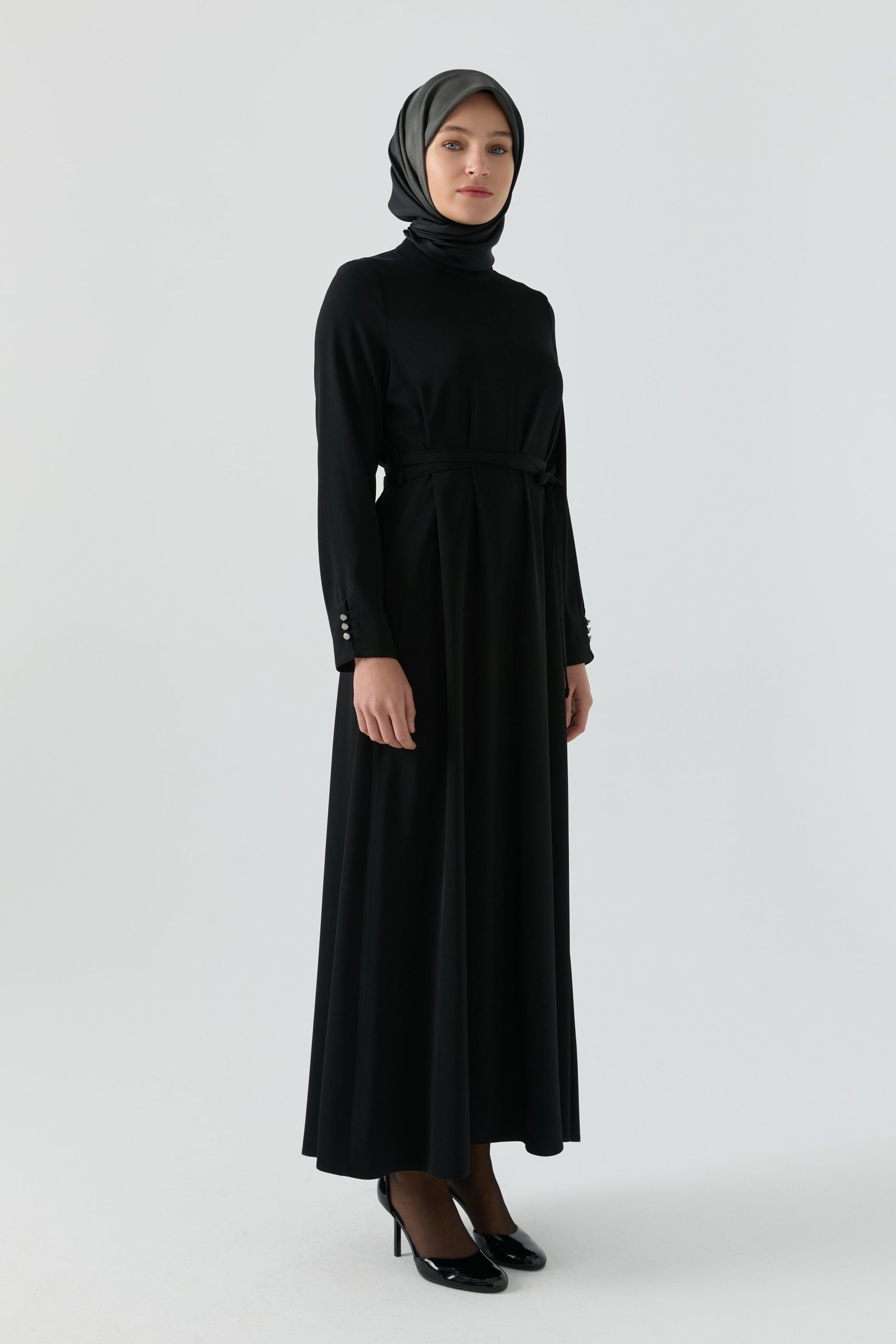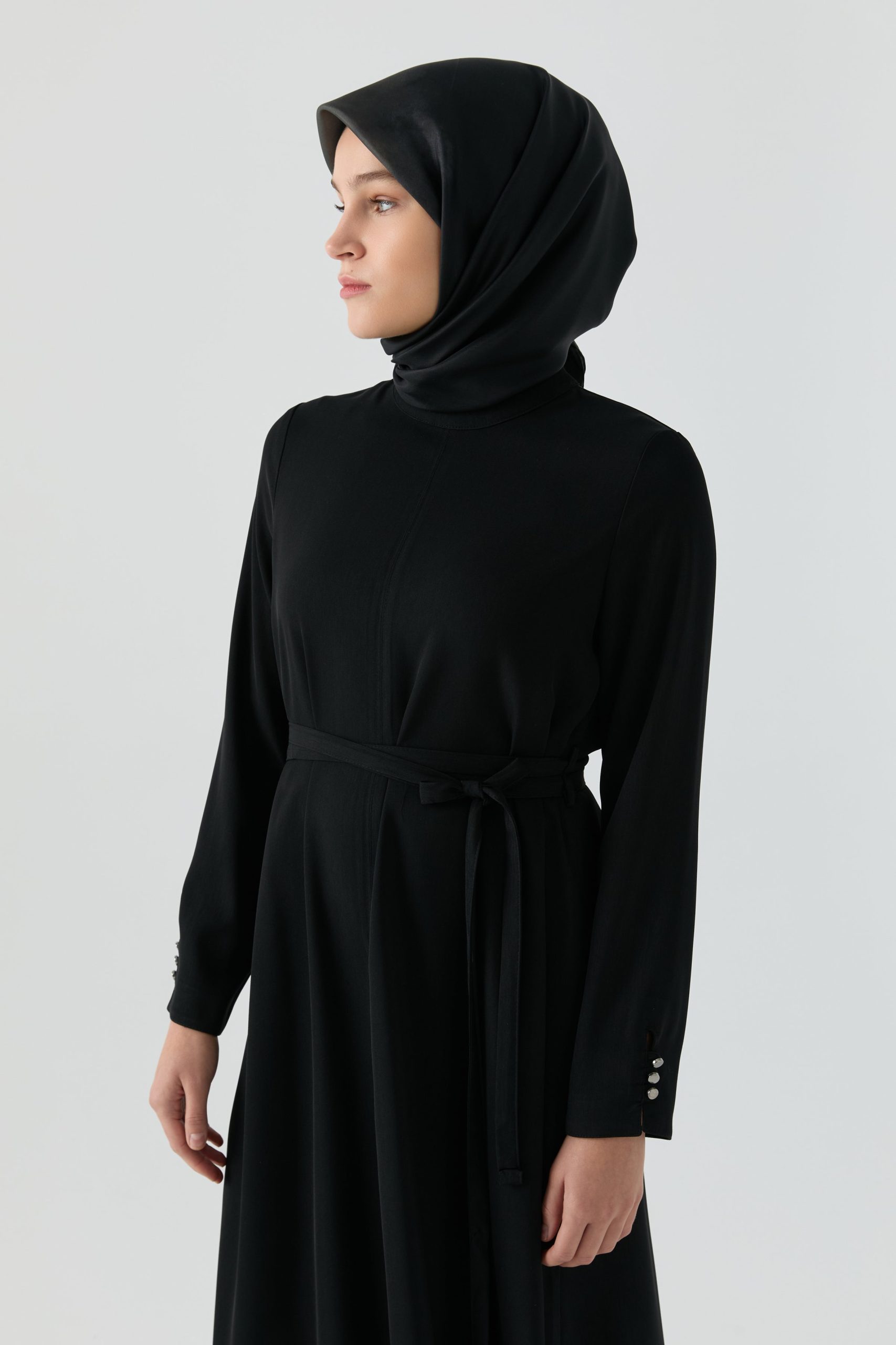 فستان بتفاصيل أزرار على الأكمام – أسود
