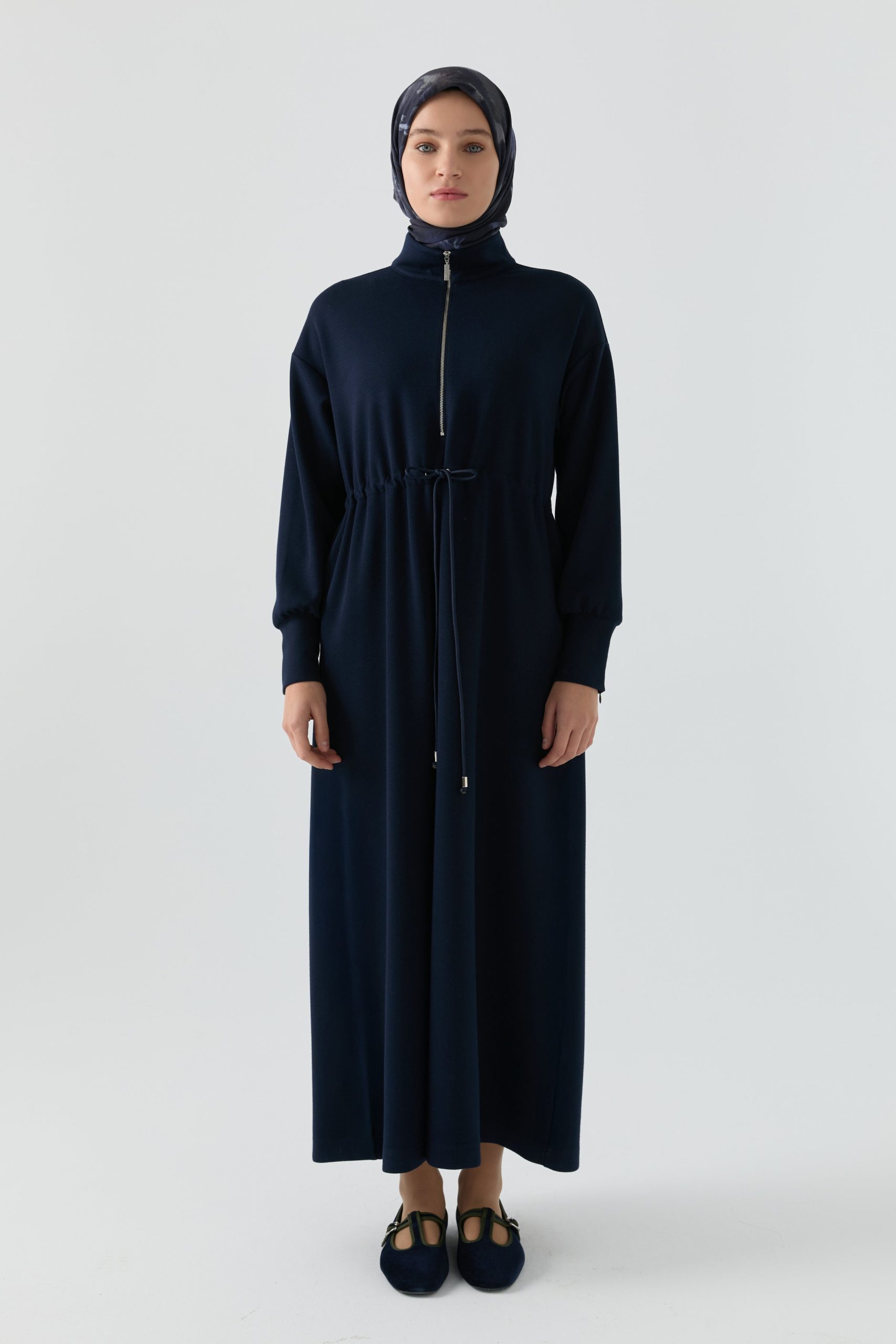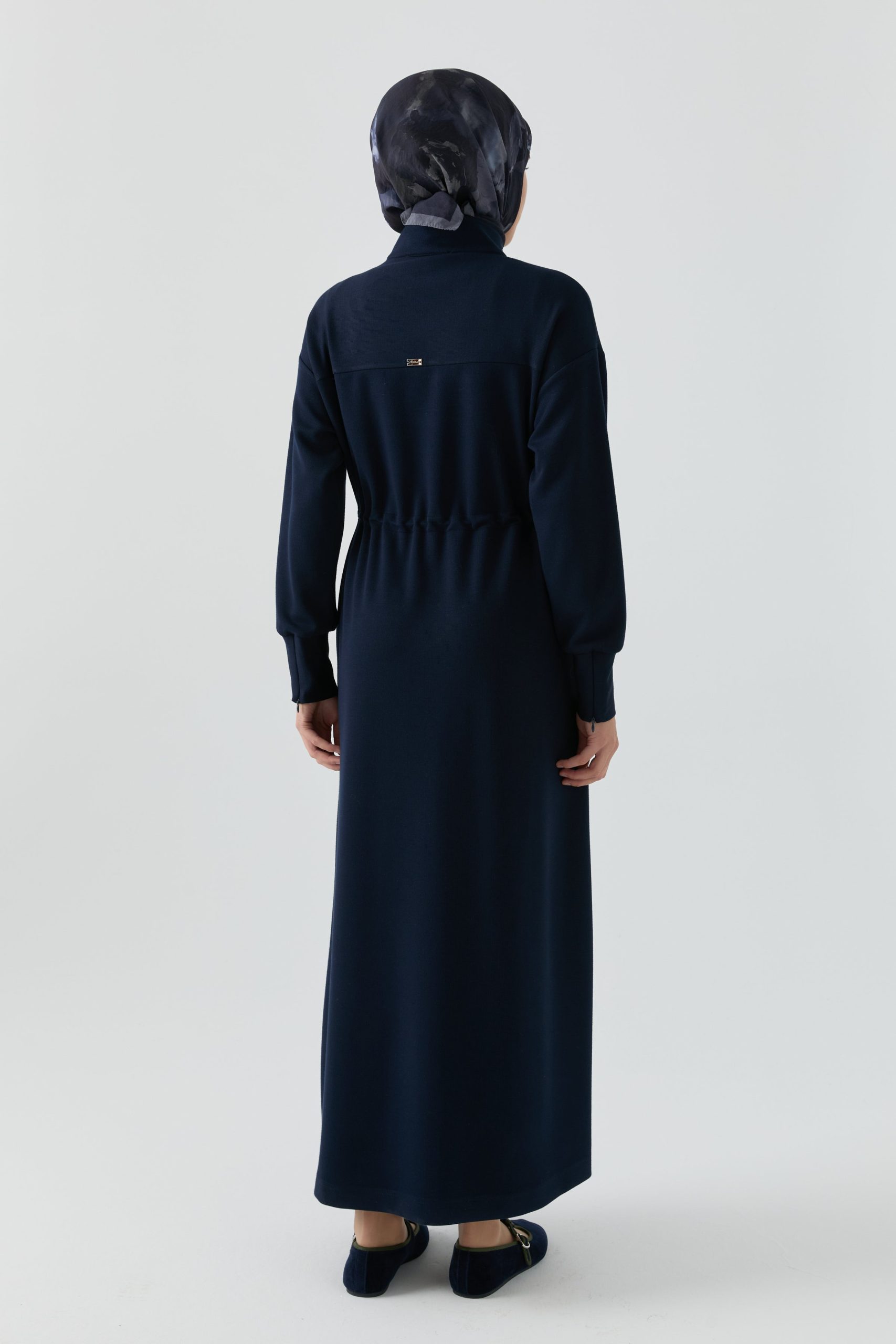فستان بتفاصيل سحاب مخفي في الأكمام – أزرق بحري