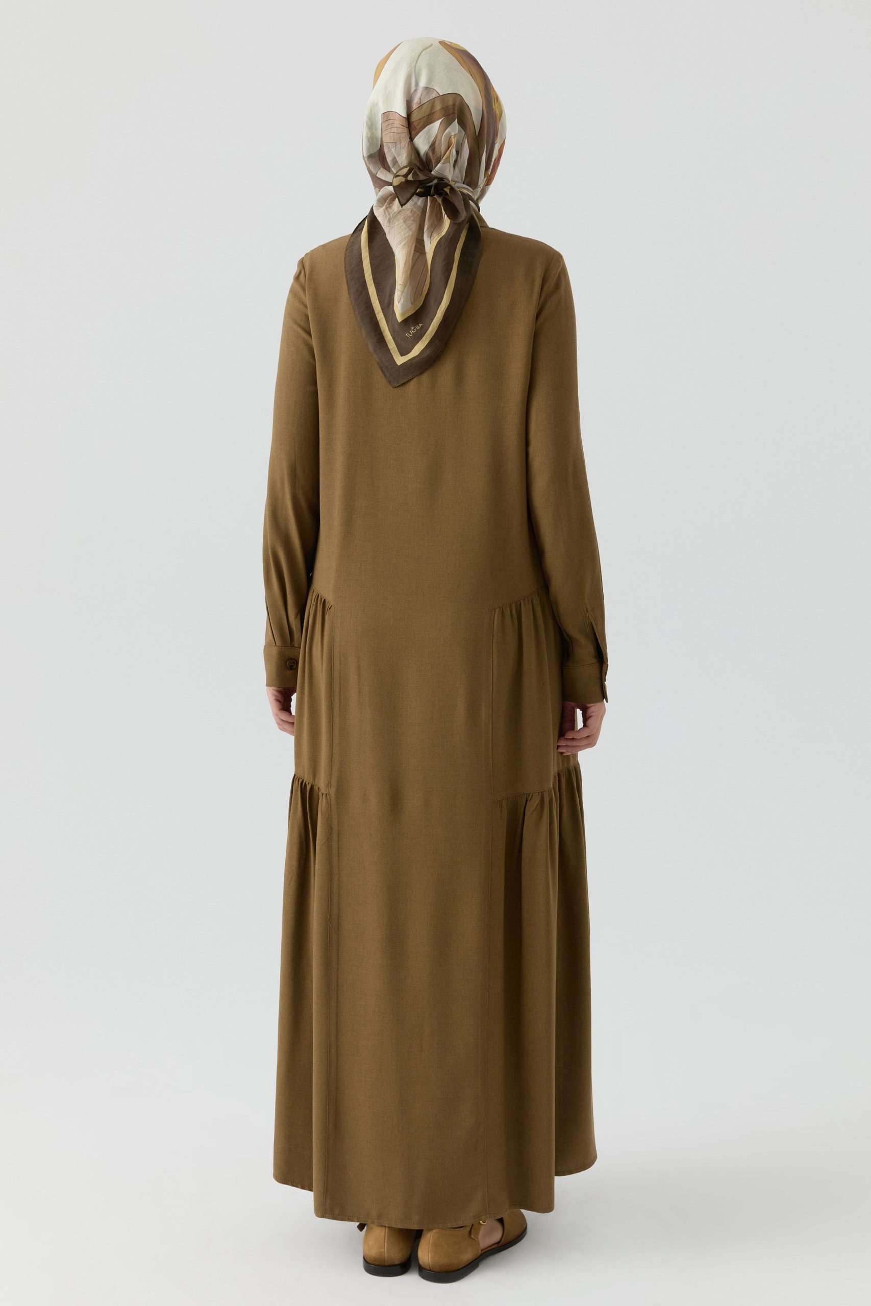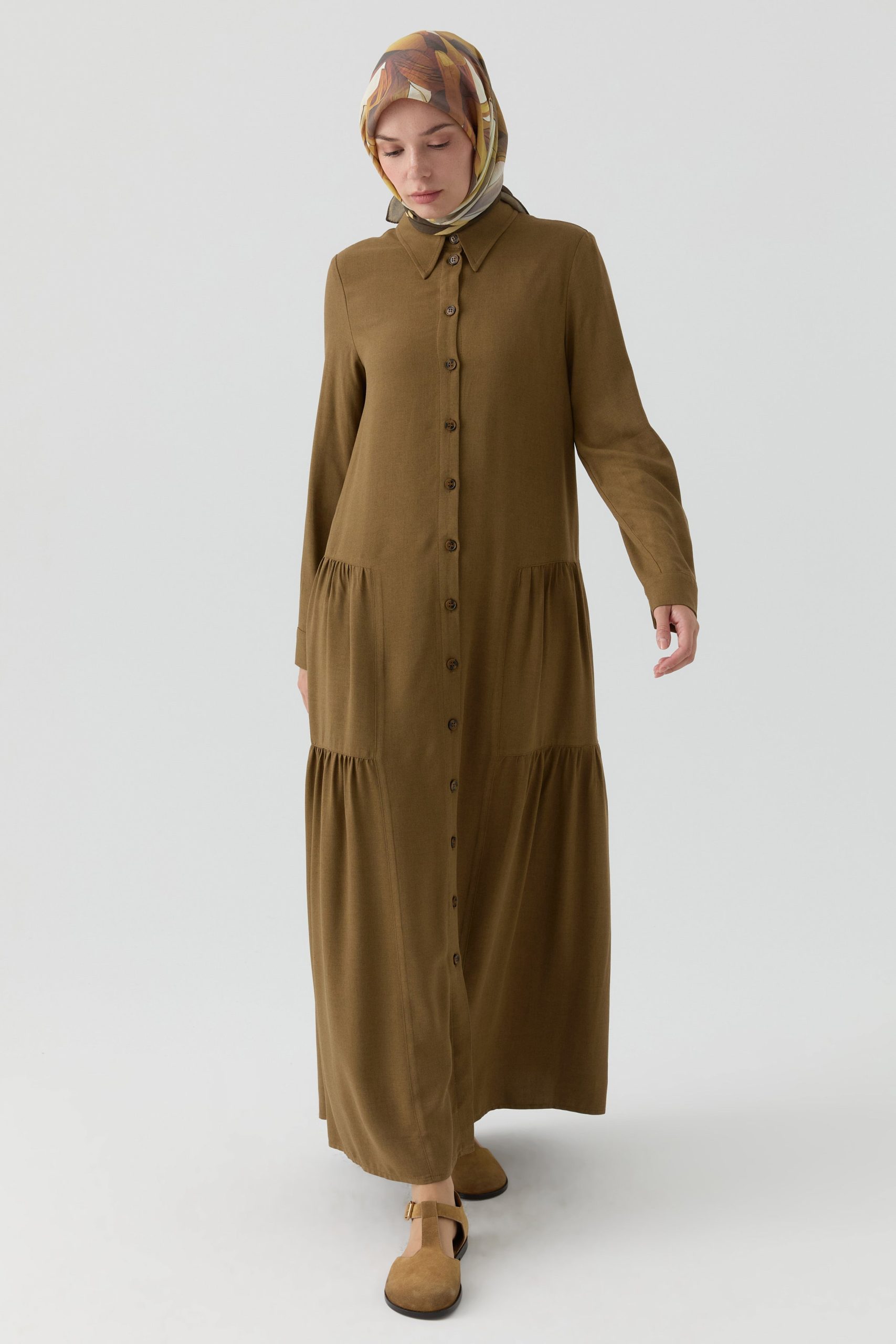 مصمم بتفاصيل مكشكشة عند الخصر والصدر، يقدم هذا الفستان مظهرًا عصريًا وأنثويًا. قماشه المتدفق وقصته المريحة تضمن الراحة طوال اليوم، بينما تصميمه الأنيق يجعله مناسبًا لكل شيء من المناسبات الخاصة إلى الملابس اليومية.