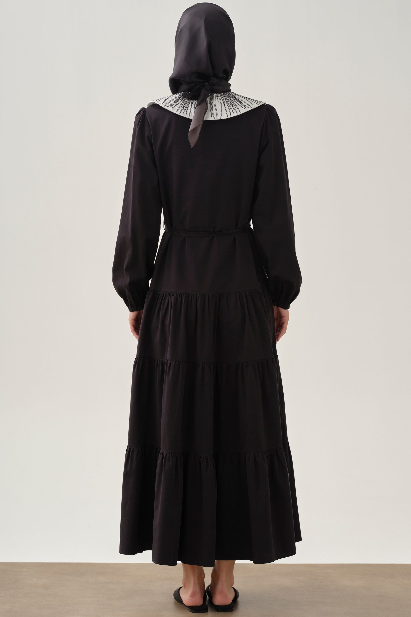 فستان بتنورة غجرية وياقة متحركة – أسود