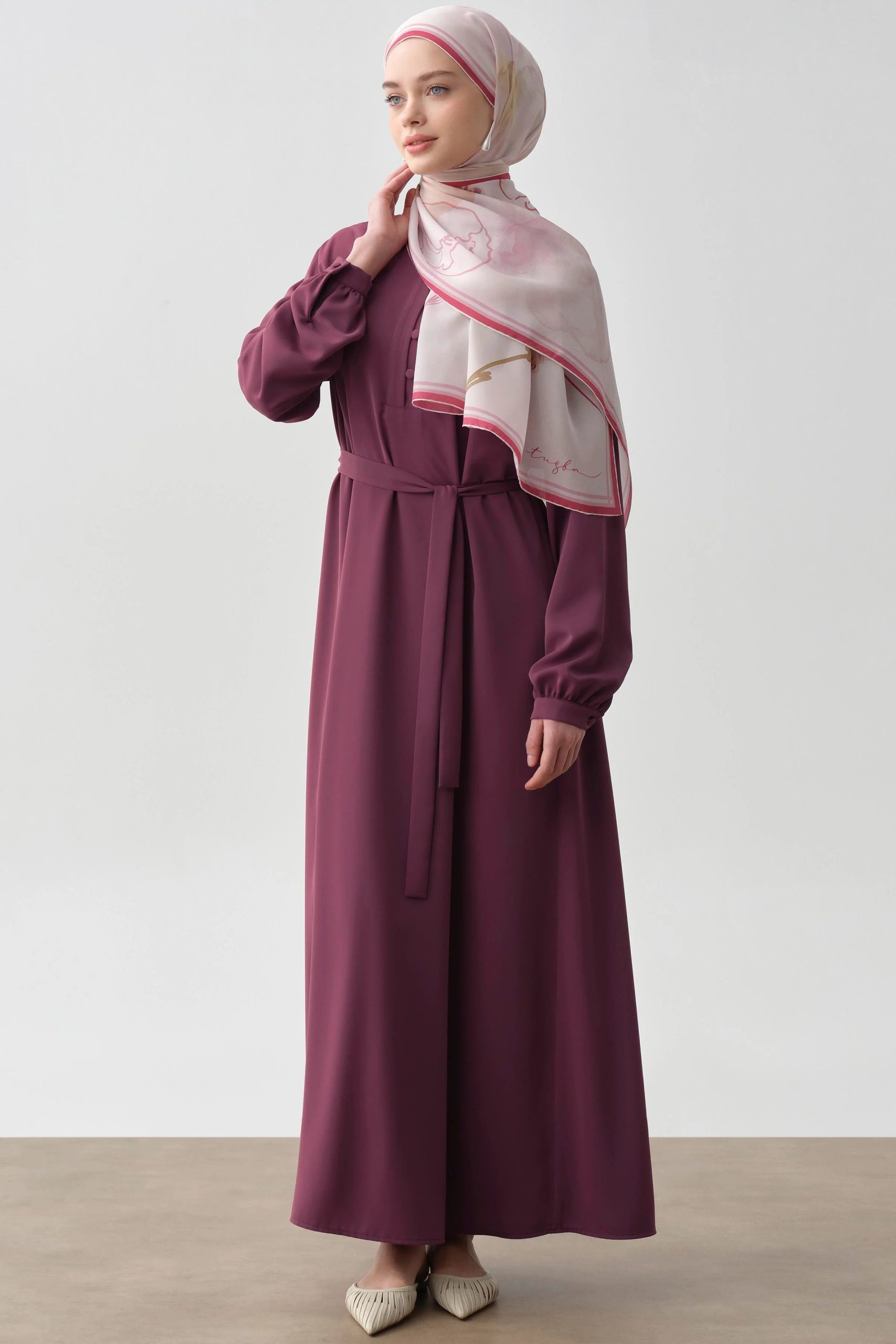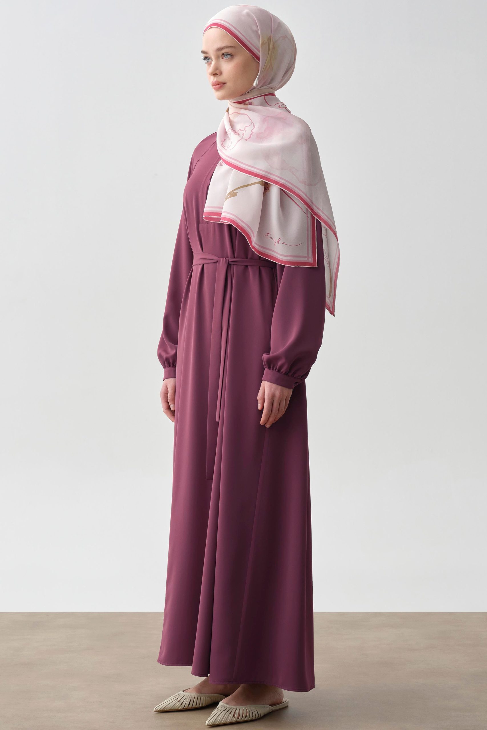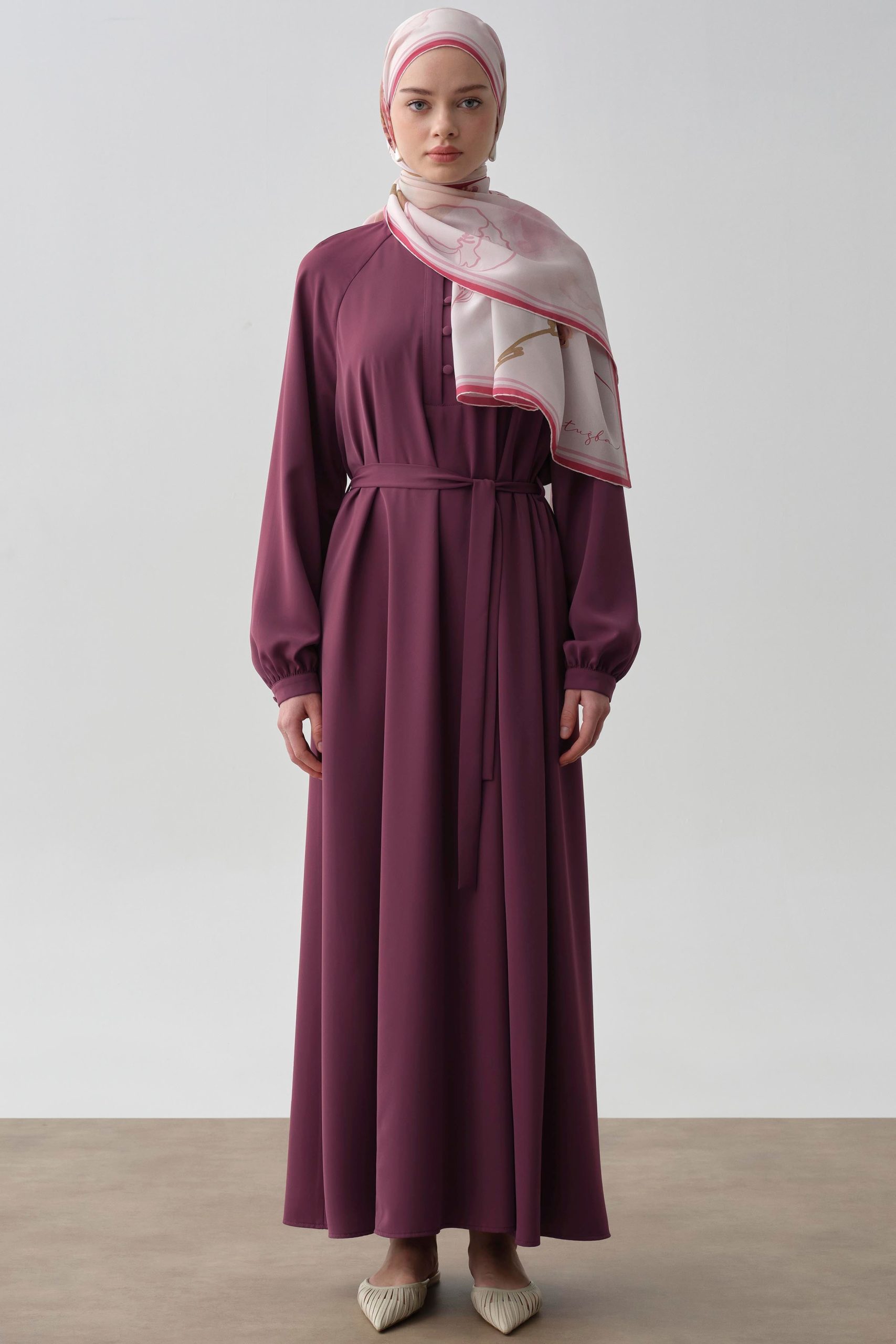 فستان بحزام ونصف طية صدر – لون البرقوق