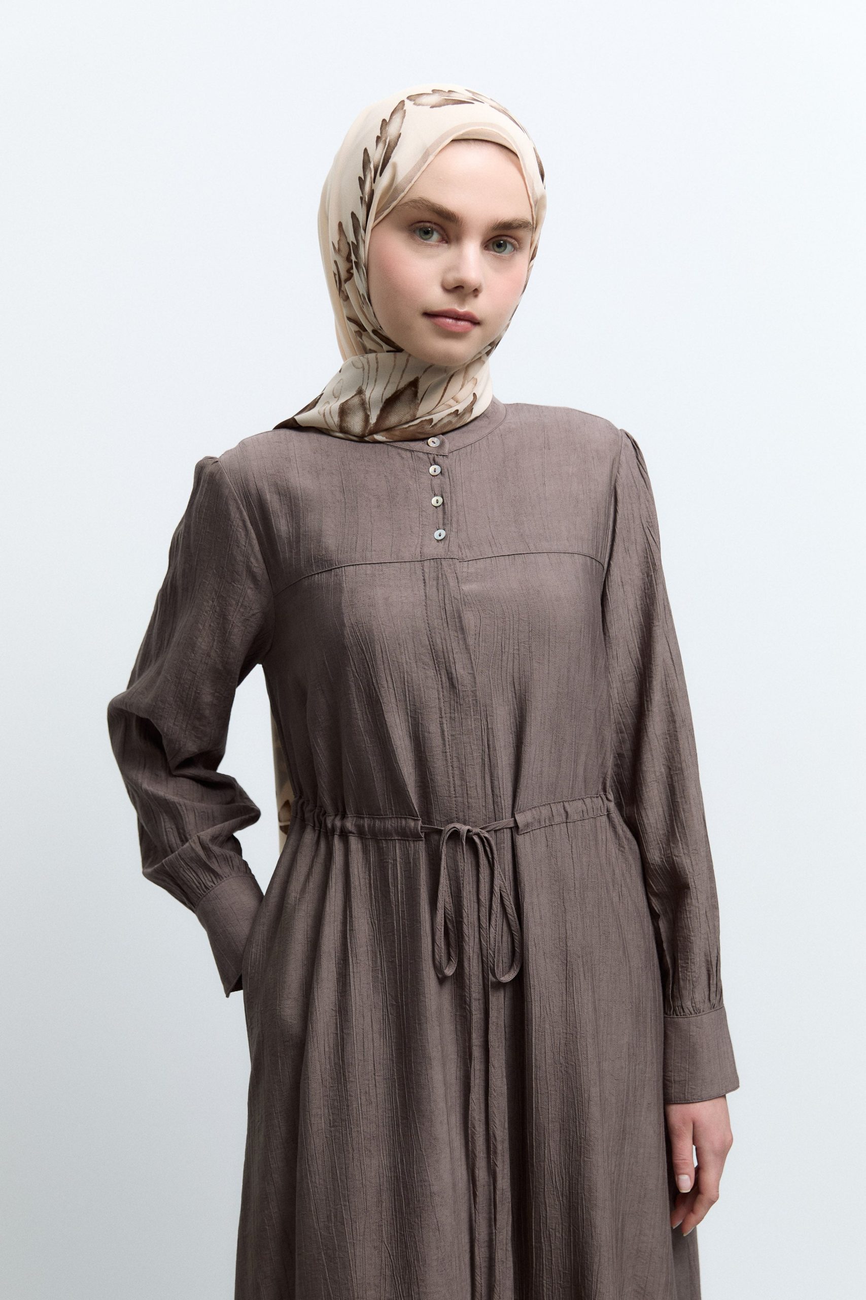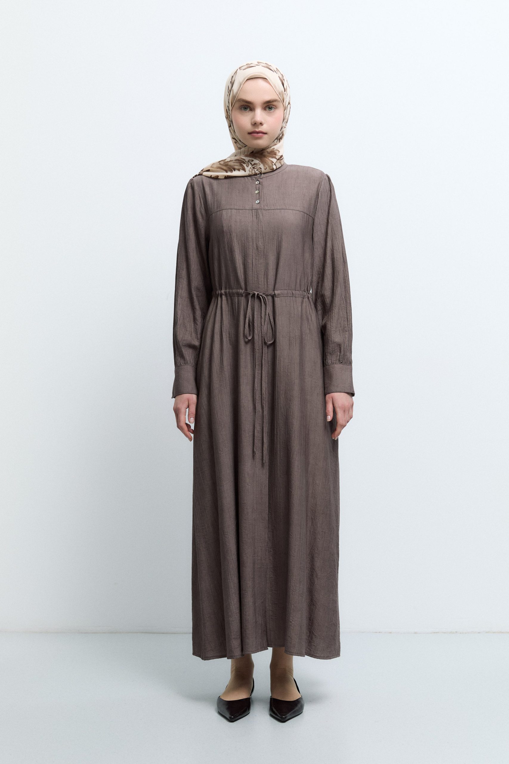 فستان بخصر مكشكش – لون القهوة