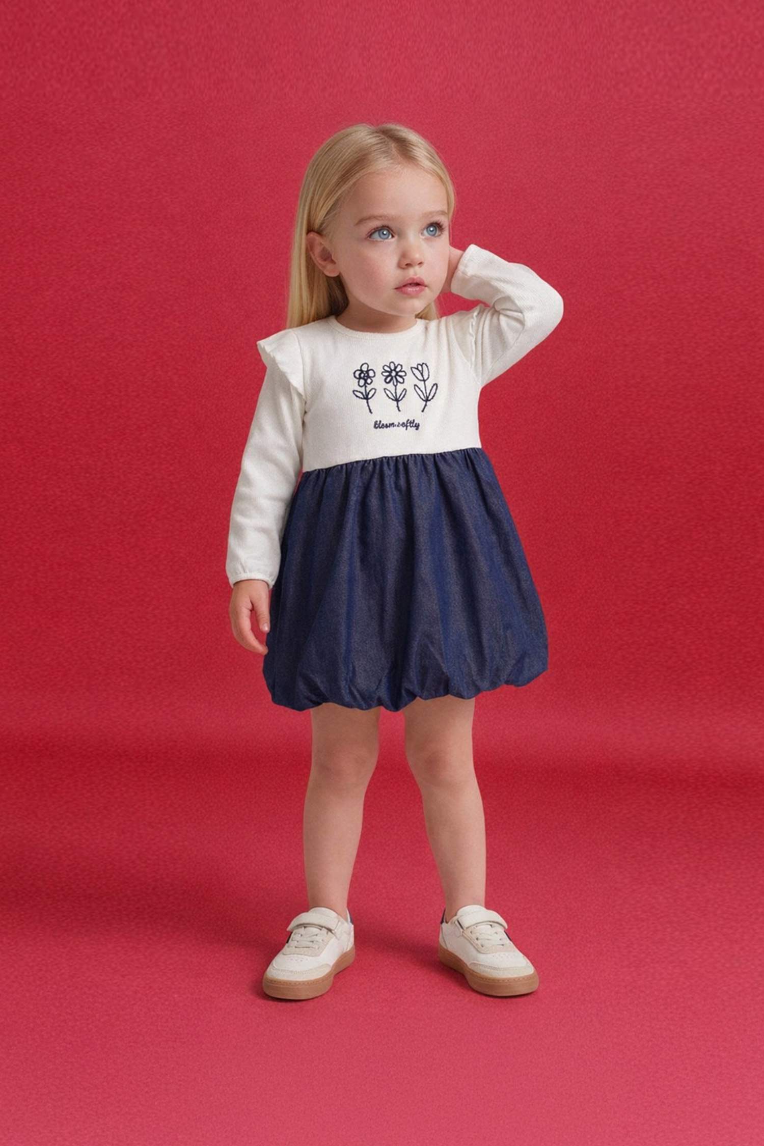 يقدم فستان بودي سويت المطرز طويل الأكمام للفتيات الرضيعة ارتداءً مريحًا بفضل قماشه الناعم والمرن. تخلق التطريزات الأنيقة وملمسه المضلع مظهرًا أنيقًا وجذابًا.