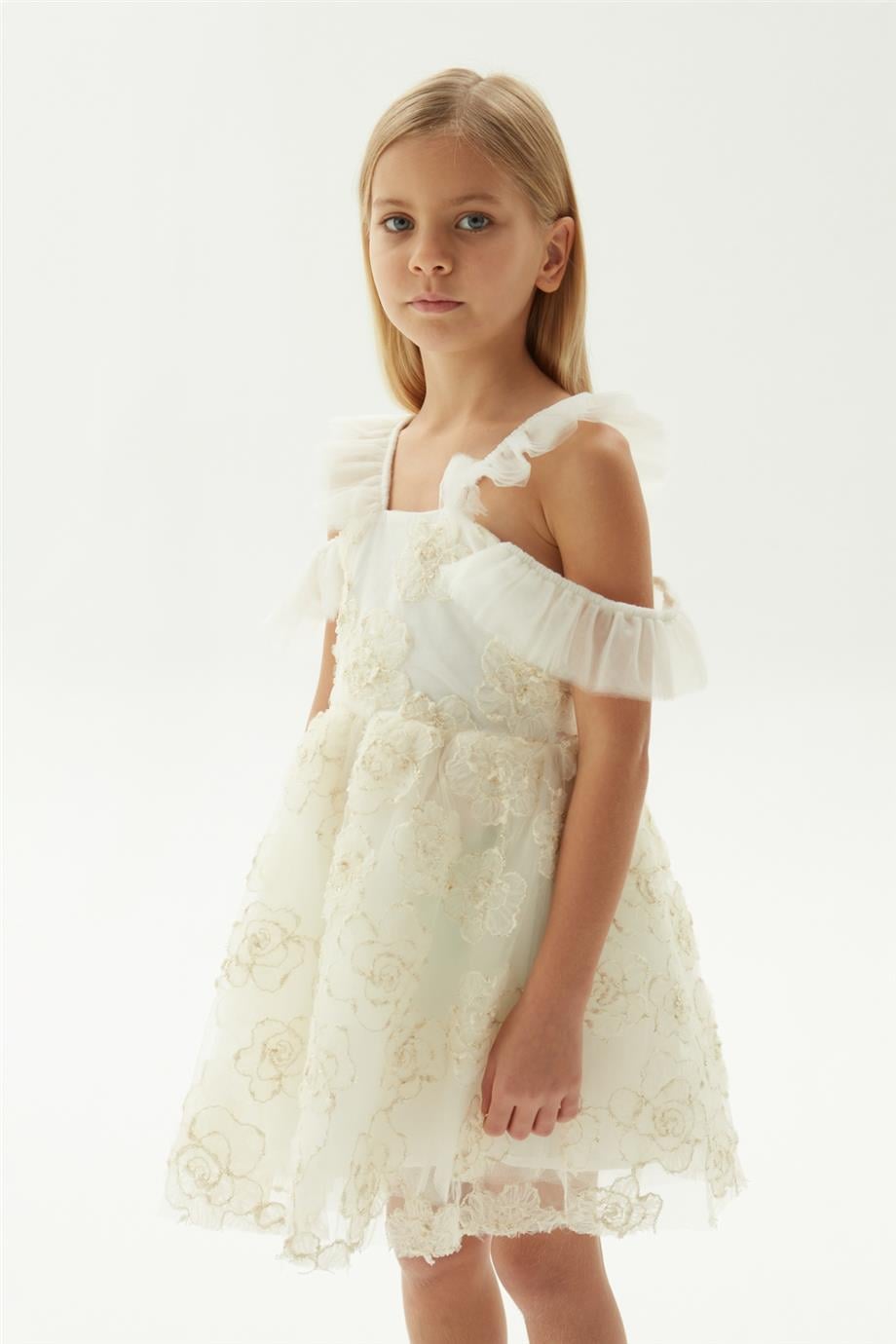فستان تايس المسائي من التول بلون الإيكرو للفتيات