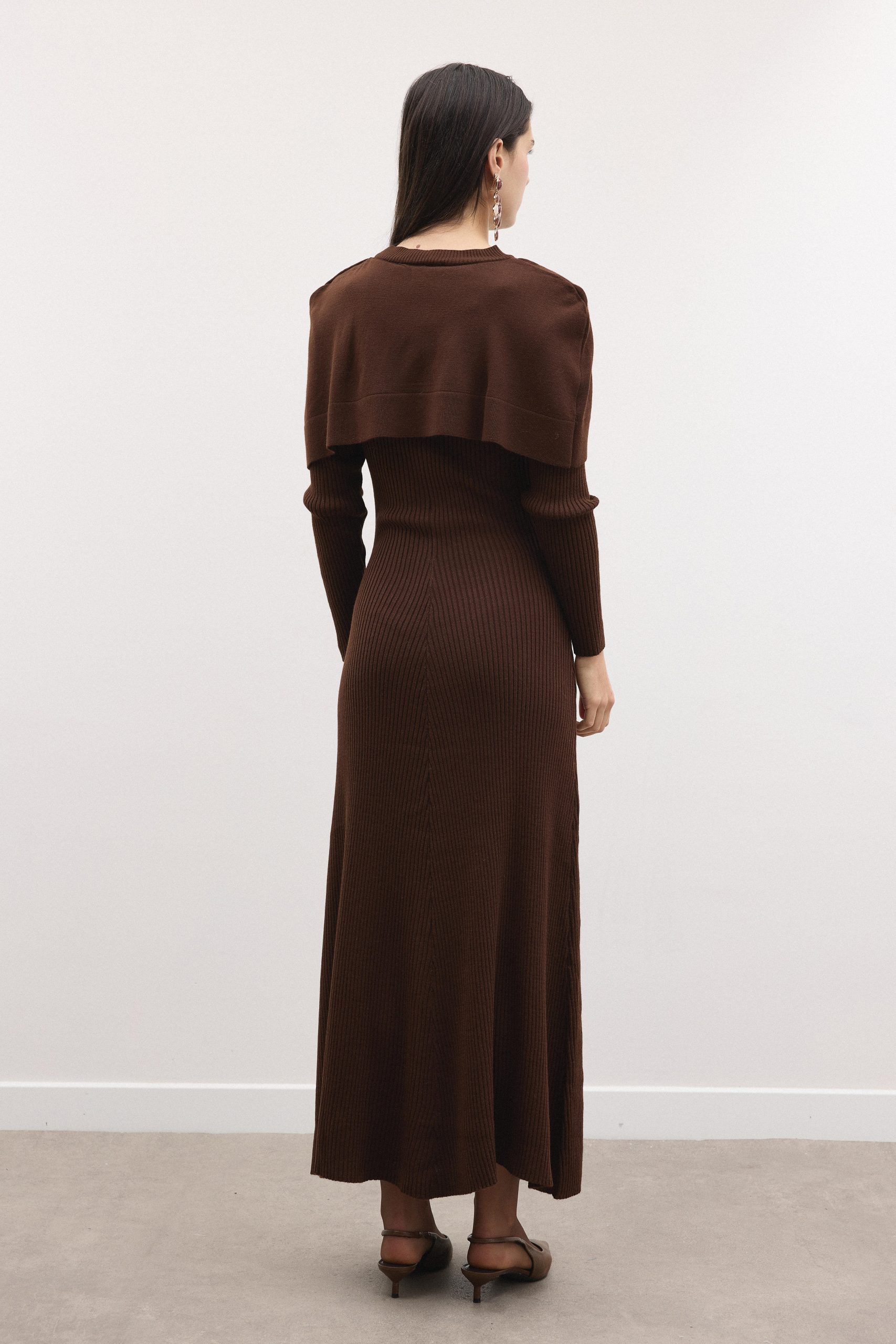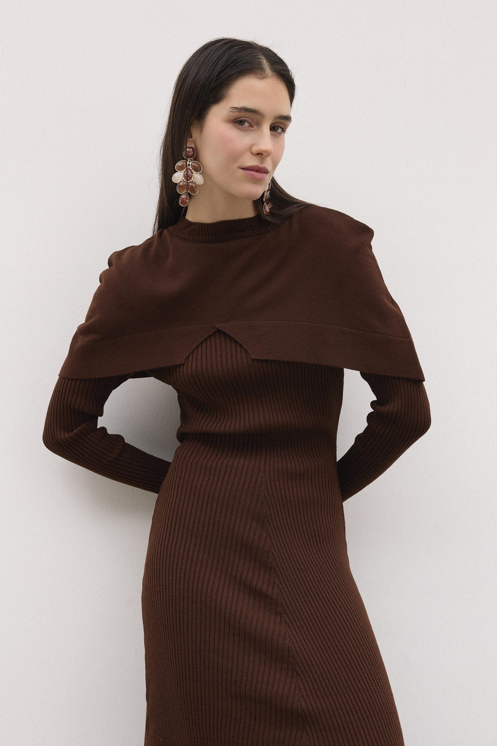 فستان تريكو بلون العاج بتفاصيل ياقة غير متماثلة – بني