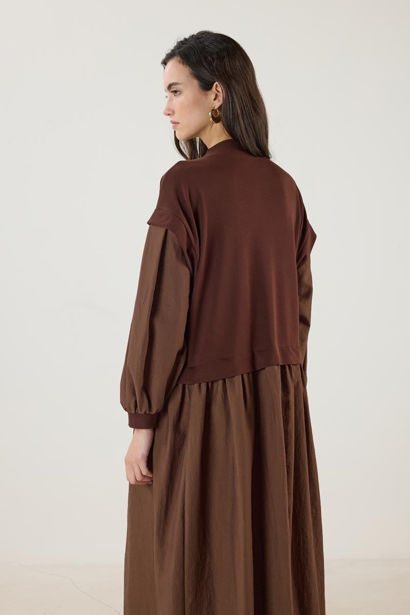 فستان تنورة المظلات بلون القهوة المُرّة