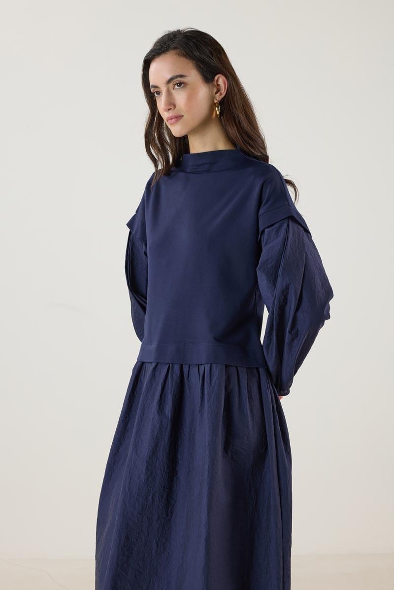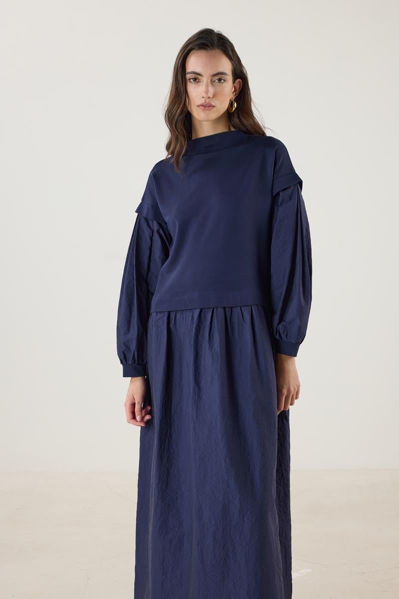 مصمم بتفاصيل مكشكشة عند الخصر والصدر، يقدم هذا الفستان مظهرًا عصريًا وأنثويًا. قماشه المتدفق وقصته المريحة تضمن الراحة طوال اليوم، بينما تصميمه الأنيق يجعله مناسبًا لكل شيء من المناسبات الخاصة إلى الملابس اليومية.