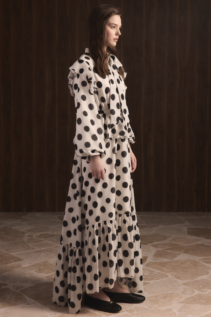 فستان تنورة منقط مع كشكش – بيج