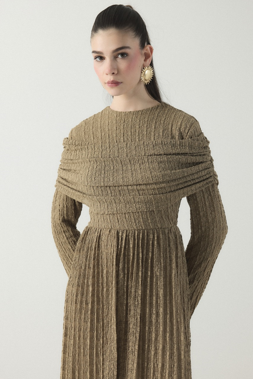 يقدم هذا الفستان الصوفي الأنيق لمسة عصرية بتفاصيل الياقة غير المتماثلة. يتميز هذا التصميم الأنيق بلون الكريم الذي يتناسب مع جميع الفصول، حيث يجمع بين الراحة والأناقة للاستخدام اليومي والمناسبات الخاصة. بفضل نسيج الصوف عالي الجودة، يضمن الفستان قصة مثالية وتجربة ارتداء مريحة.