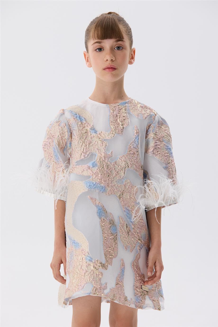 فستان تيس للبنات بتفاصيل الريش واللمعان