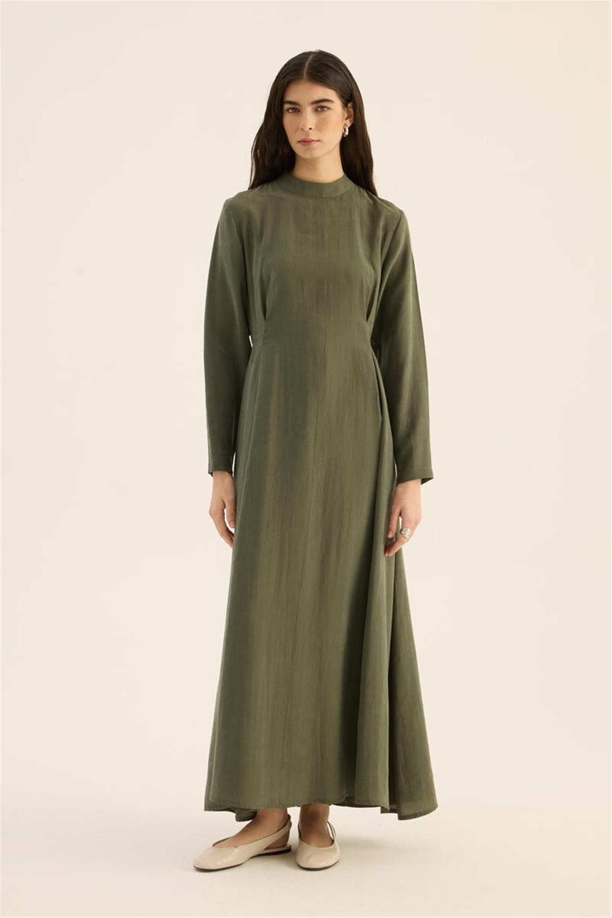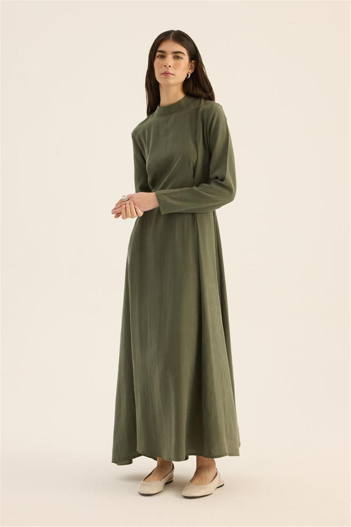 فستان تينسيل باللون الكاكي بتأثير الحجر