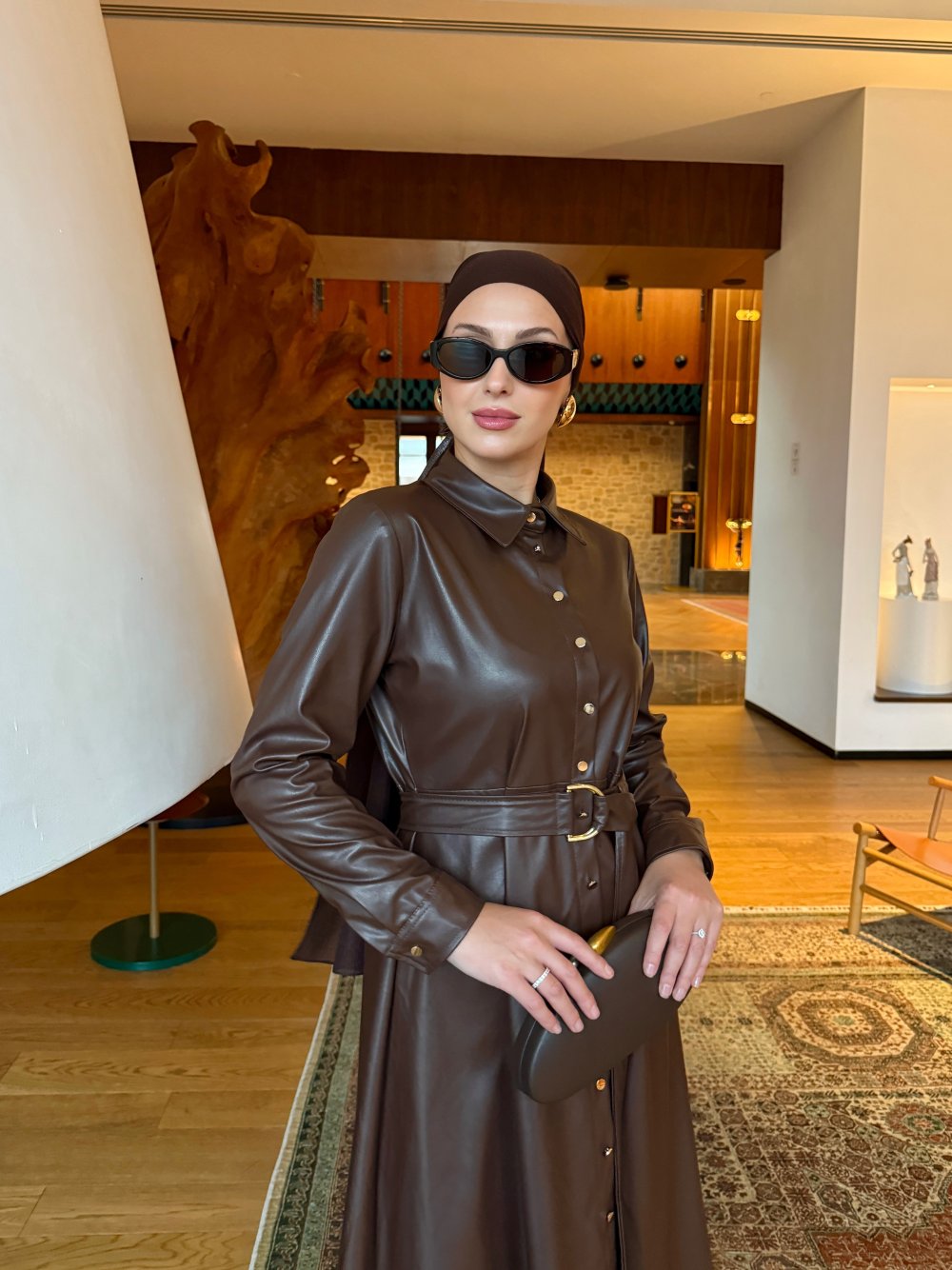 يبرز هذا الفستان الطويل بتصميم أنيق وتفاصيل عصرية، حيث يظهر وقفة مثالية بفضل قماش الترينش المتين والمرن في الوقت نفسه. تضيف التفاصيل المطوية في المقدمة حركة للتصميم، بينما يؤكد خط الخصر مع الحزام على منحنيات الجسم بأناقة. بطوله الكامل وتصميمه البسيط، يقدم خياراً أنيقاً للمناسبات الخاصة وللستايل الحضري.