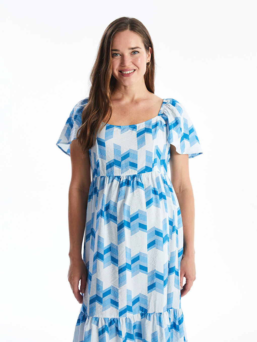 فستان حمل أزرق داكم بأكمام قصيرة ورقبة على شكل حرف U ومزخرف من علامة LCWAIKIKI Maternity مع خصومات حصرية ودفع بالتقسيط ودفع عند الاستلام في متاجر LCW! تسوّق عبر الإنترنت الآن واستلم المنتج عند باب منزلك! – S4LN46Z8-LQQ