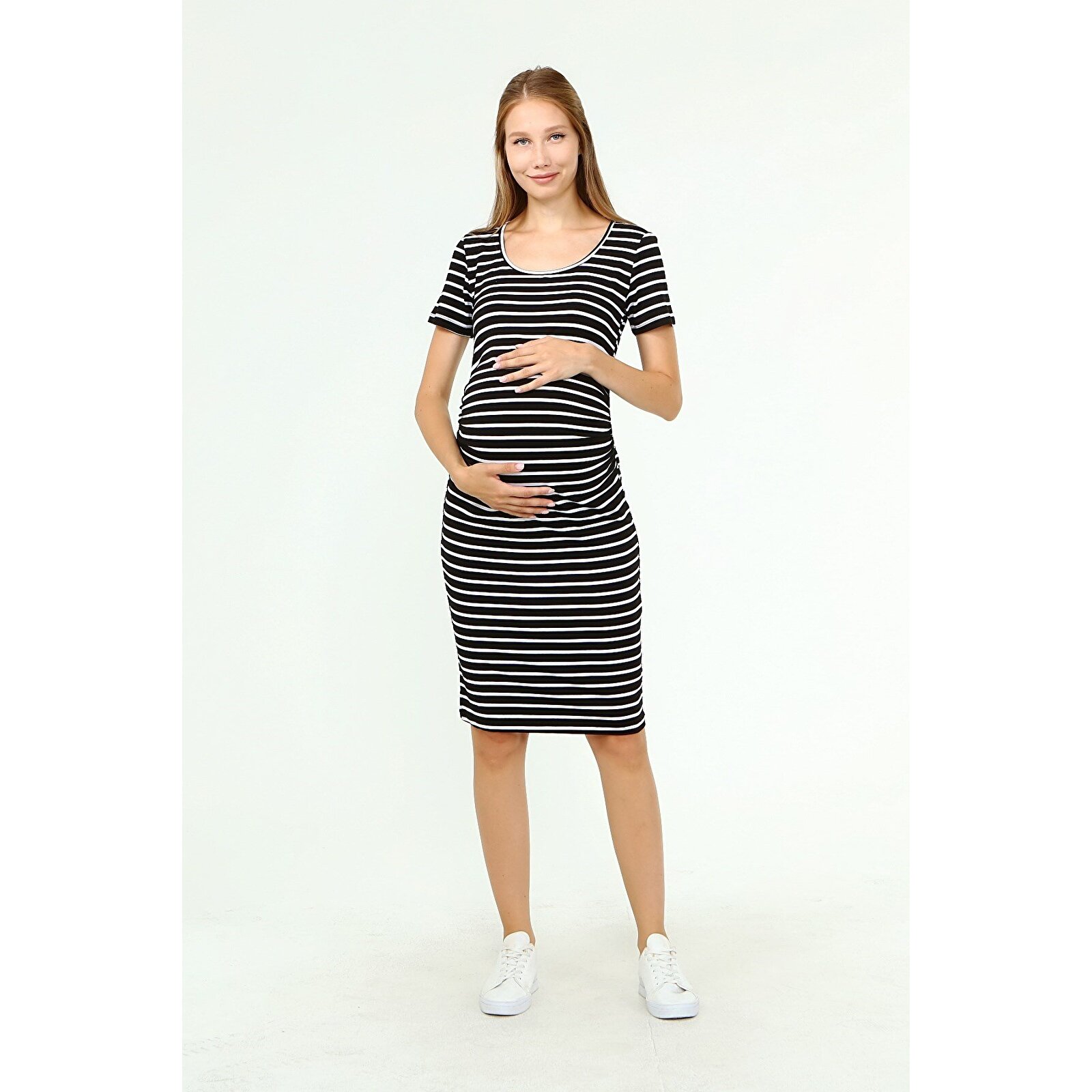 فستان حمل أسود قصير الأكمام للنساء