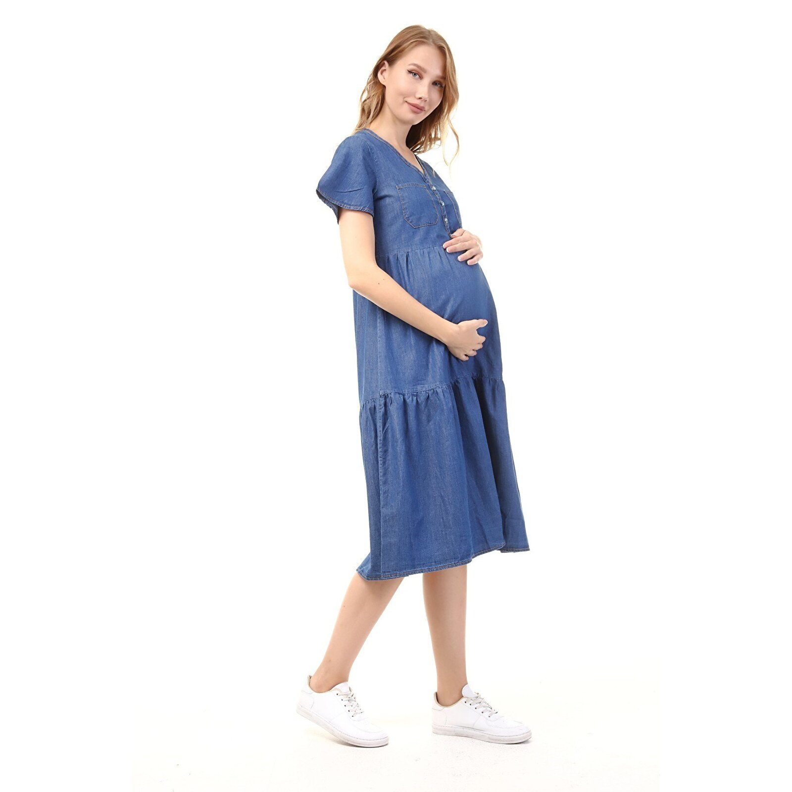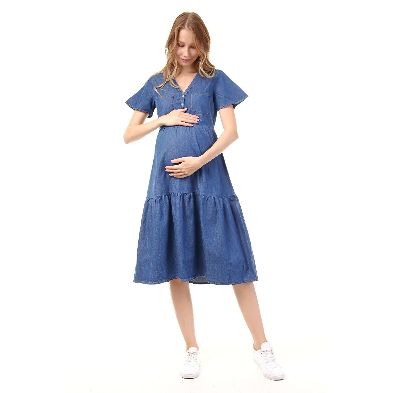فستان حمل من قماش الدنيم بأزرار وجيوب ماركة مافي للنساء