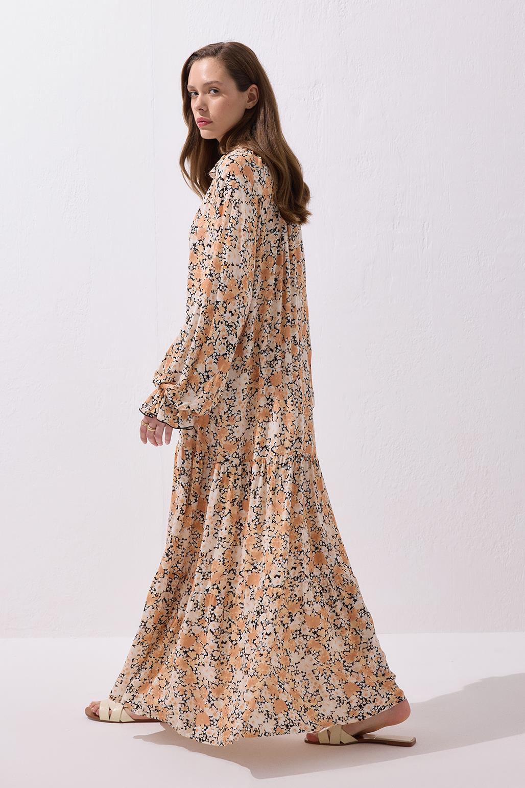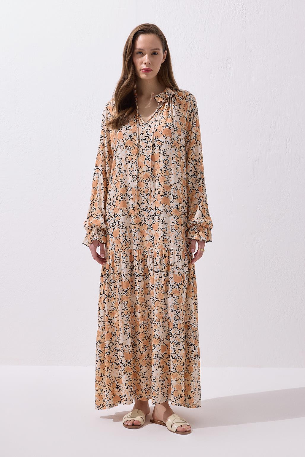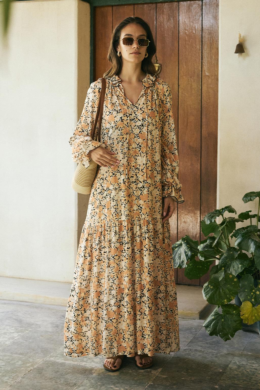 فستان ديان الفيسكوز الطويل المموج باللون البرتقالي الناعم