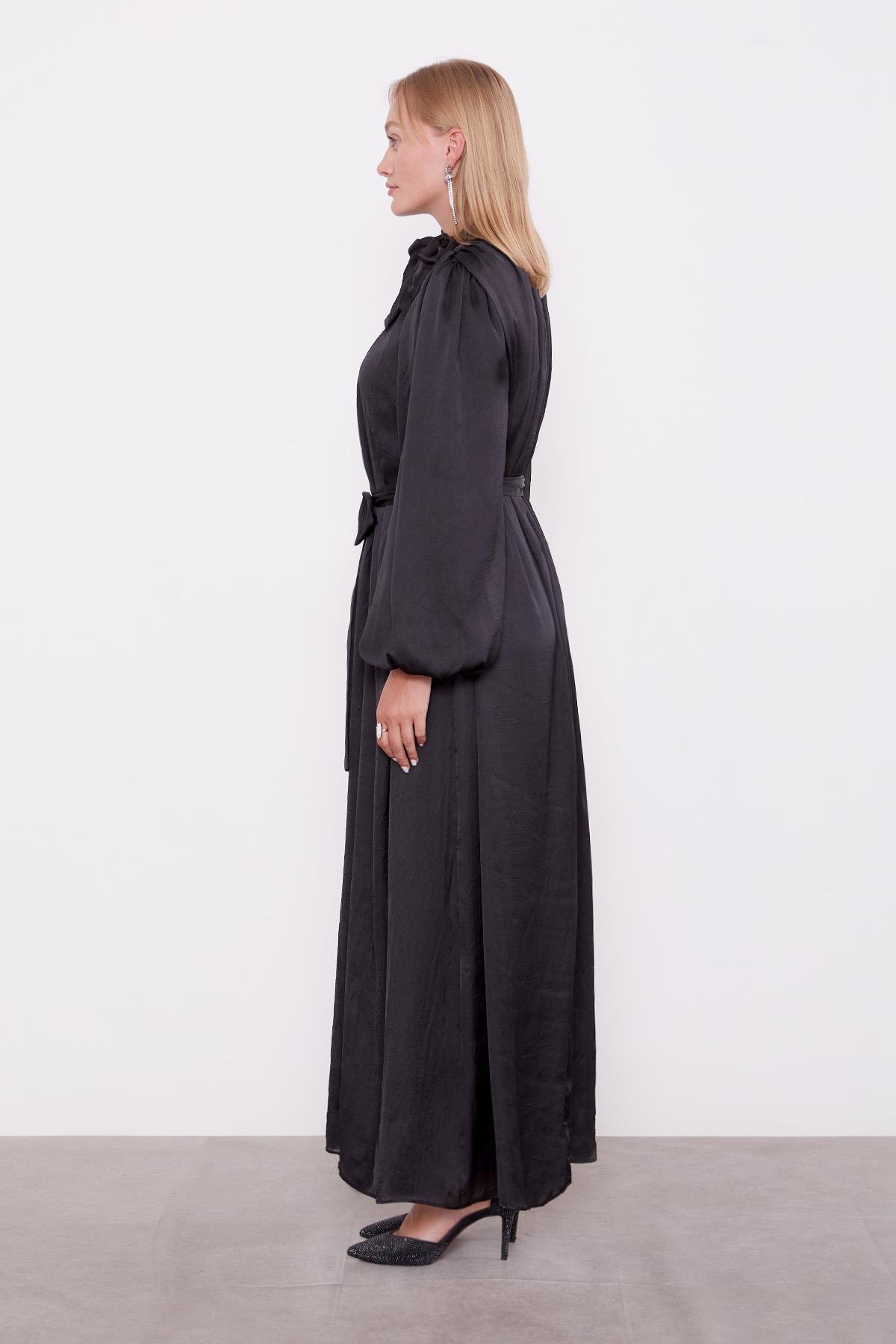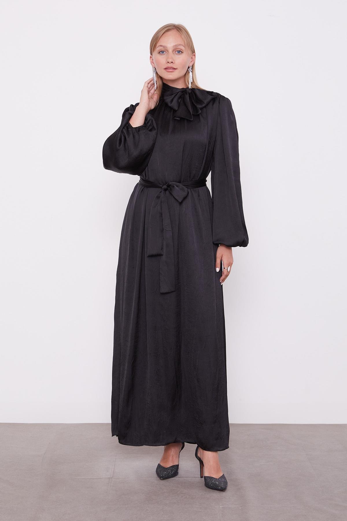 فستان ساتان مكرمش بتفاصيل حزام أسود