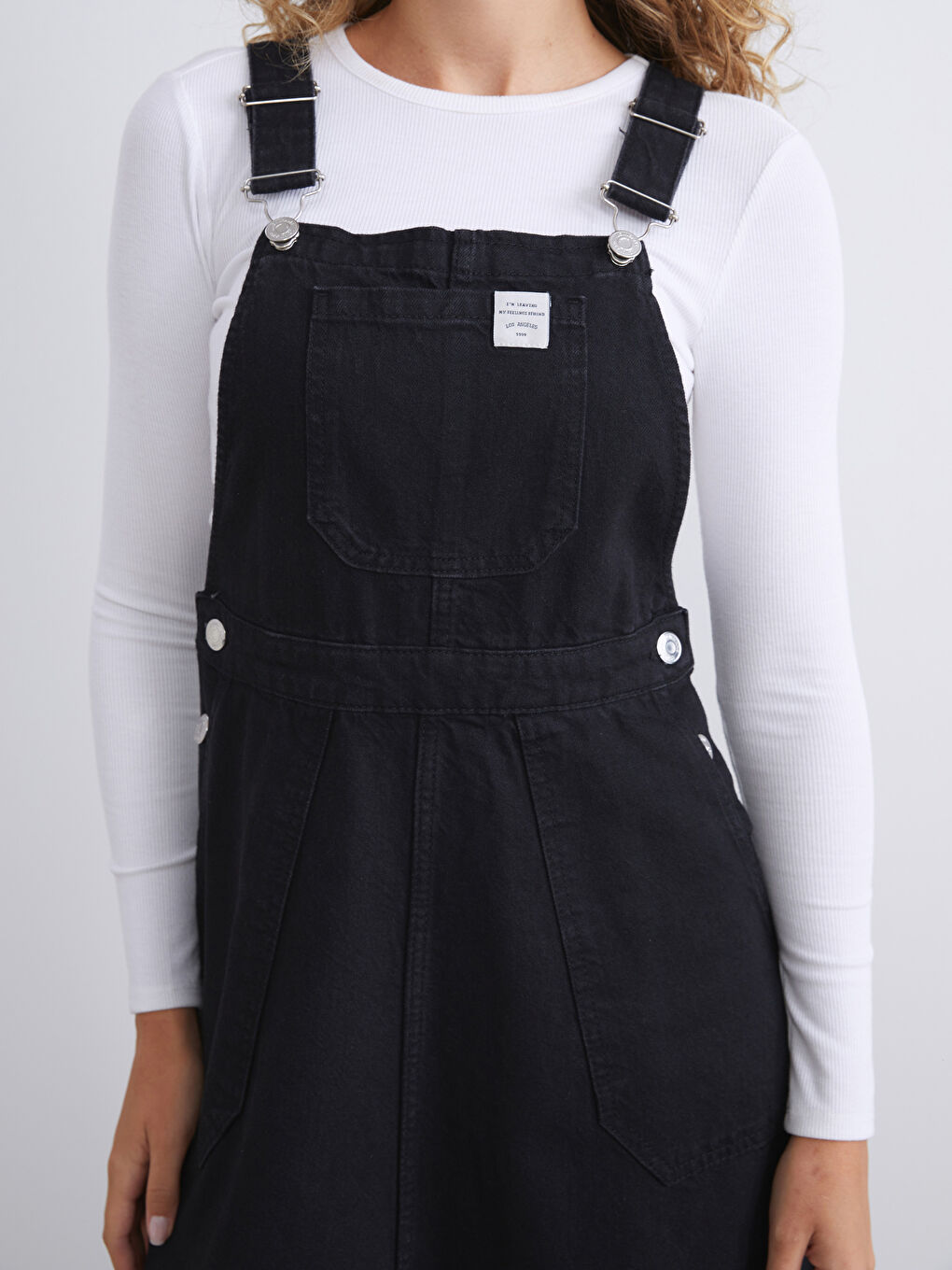 فستان سالوبت جينز بفتحة مربعة سوداء