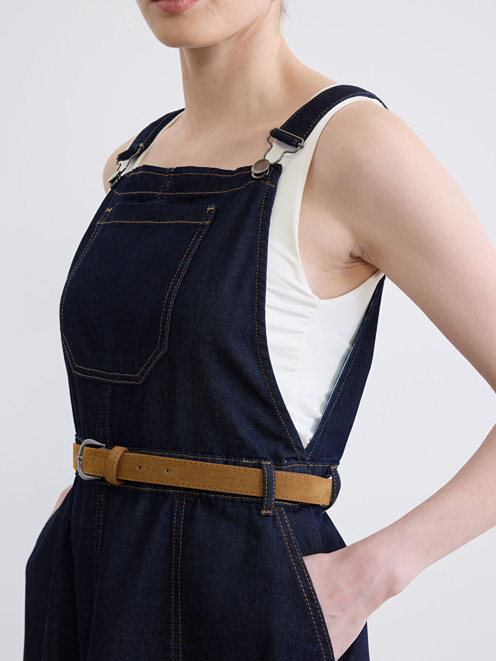 فستان سالوبيت جينز أزرق نيلي من LCWAIKIKI Classic بحزام عند الخصر ورقبة مربعة متوفر الآن في LCW مع خصومات حصرية وتقسيط ودفع عند الاستلام! تسوقي أونلاين الآن واحصلي على المنتج عند باب منزلك! – S6M539Z8-309