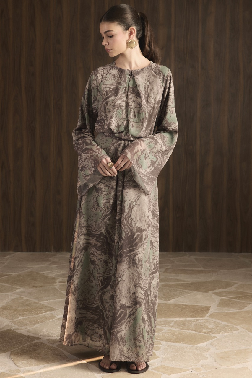 فستان شيفون بتصميم ضبابي – لون كاكي