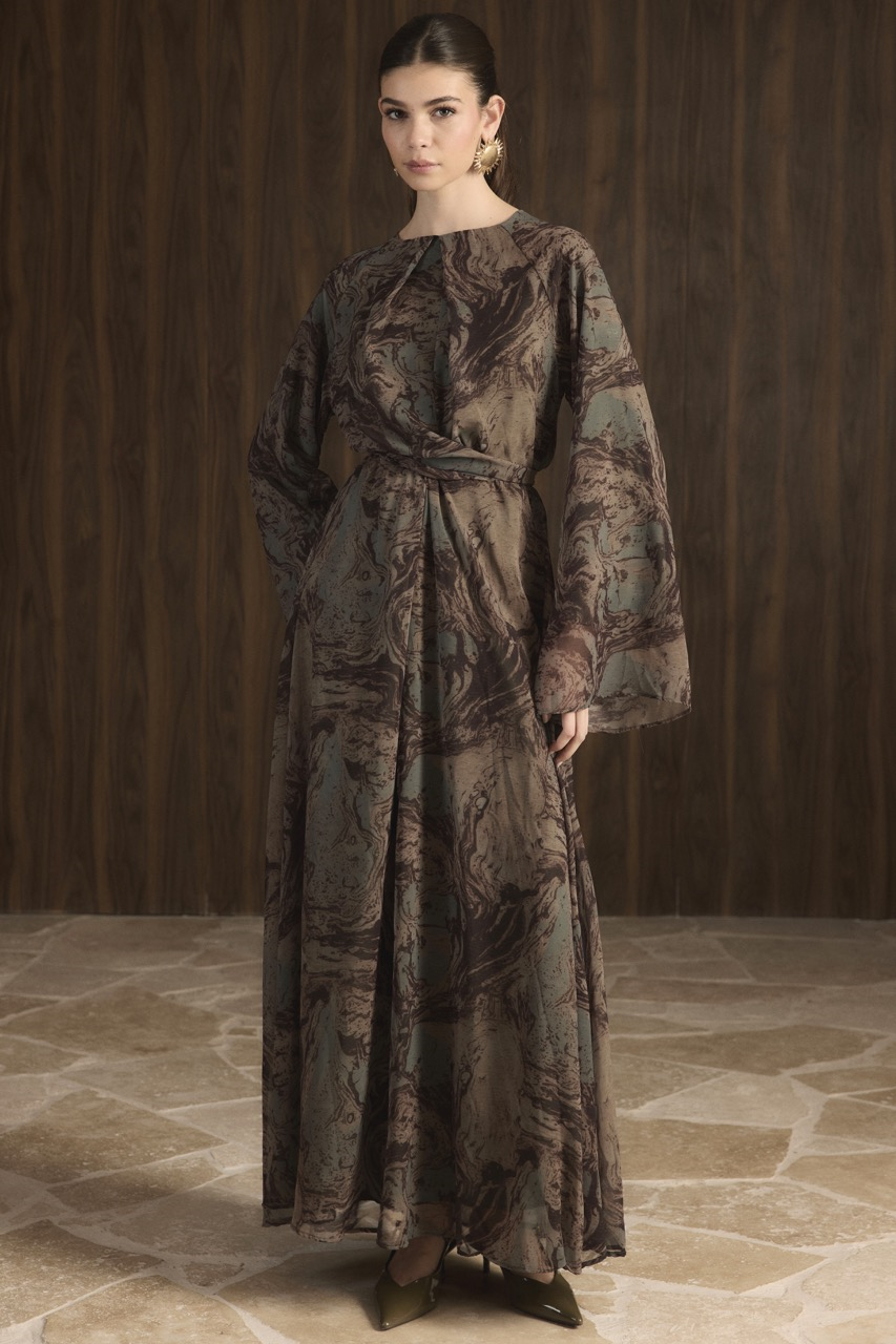 يعد هذا الفستان الأنيق من الشيفون بنقشة ميستي قطعة أساسية لا غنى عنها في خزانة ملابسك، بفضل تصميمه العصير وقماشه الخفيف. يمنحك اللون البني تناغمًا مثاليًا لكل موسم ولكل إطلالة. سواء في المناسبات الخاصة أو الاستخدام اليومي، يكمل هذا الفستان أناقتك مع توفير الراحة والأناقة في آن واحد.