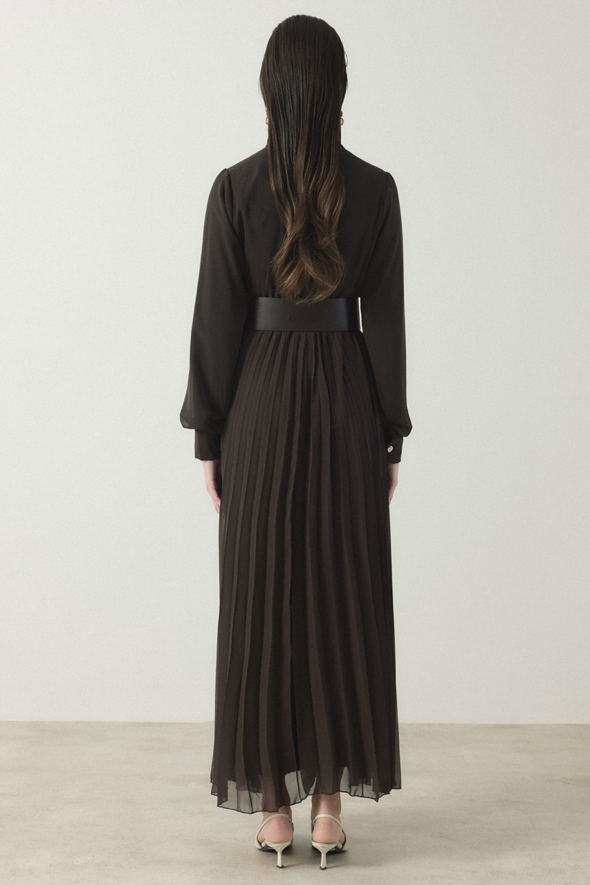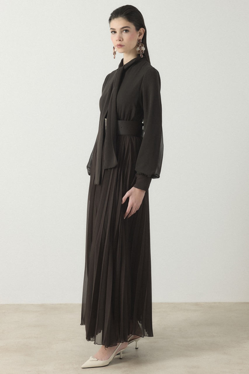 ارتقِ بملابسك مع فستان الشيفون سولي، الذي يتميز بتنورة أنيقة ولون القهوة الراقي. مثالي للمناسبات الخاصة أو لإضافة لمسة من الأناقة إلى إطلالتك اليومية.