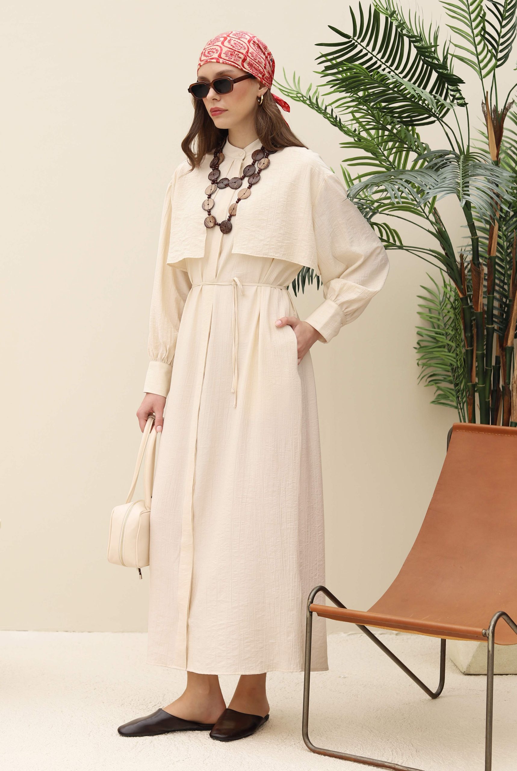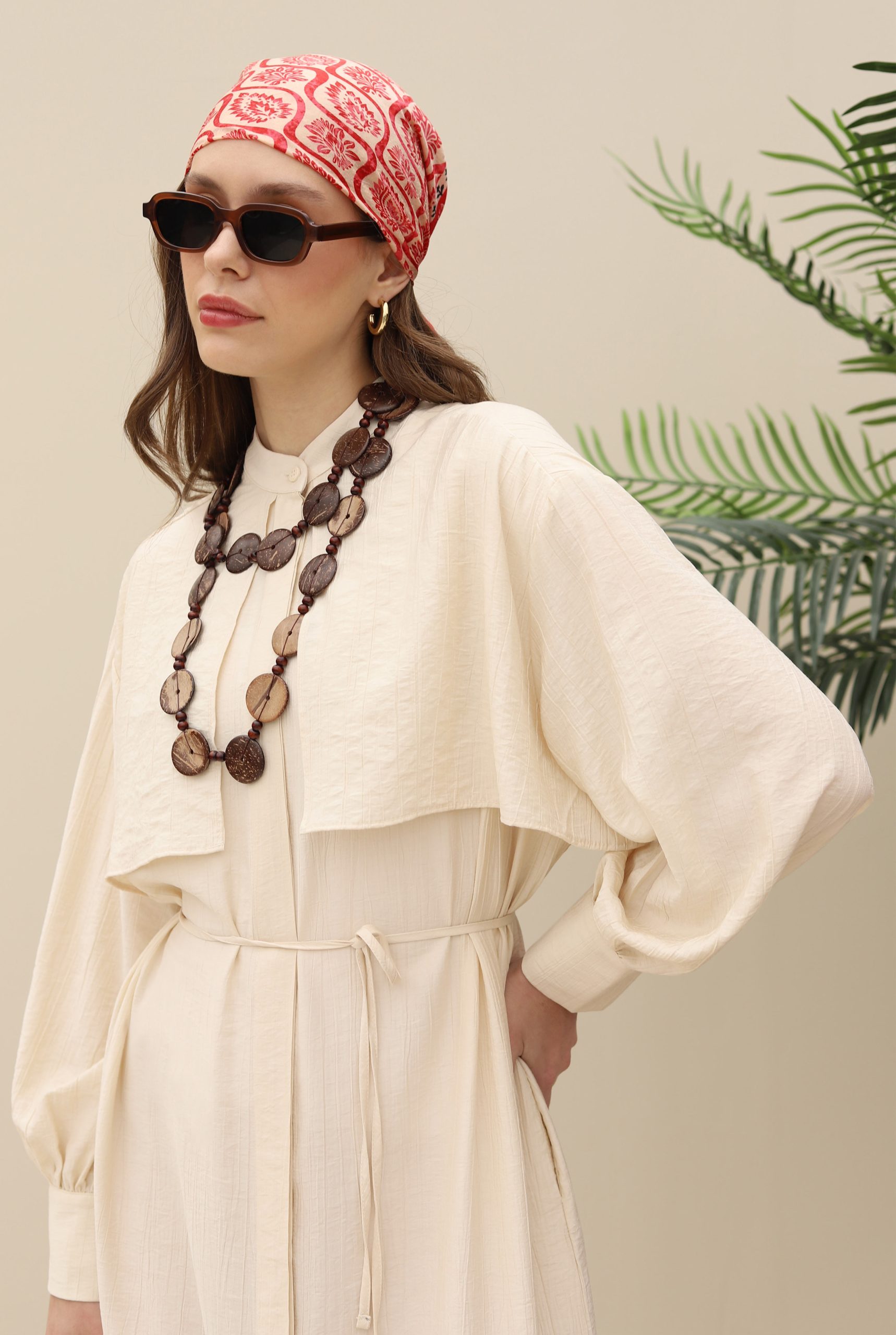مصنوع من خليط قماش يتكون من 85% رايون و15% بولي أميد. خيط الرايون المستخدم في هذا المنتج يُستخرج عادةً من أشجار الزان والأوكالبتوس والخيزران. يتميز بملمس ناعم وتدلي أنيق من السليولوز الطبيعي، مما يمنح إحساساً حريرياً وقدرة على التنفس. البولي أميد المضاف بنسبة 20% إلى خليط القماش يوفر متانة إضافية وتقليل التجعد ولمعة خفيفة. المقاسات المتوفرة أدناه؛ قارنها مع فستانك المفضل لتحصلي على القياس الأنسب. يتضمن حزاماً مصنوعاً من نفس قماش الفستان. الطول: 134 سم (قد يختلف الطول من 1-5 سم بين عمليات الإنتاج). معلومات القالب: الصدر الورك الذراع المقاس 36: 128 سم 130 سم 46 سم المقاس 38: 132 سم 134 سم 48 سم المقاس 40: 136 سم 138 سم 50 سم المقاس 42: 140 سم 142 سم 52 سم مقاسات العارضة: الطول: 176 سم الصدر: 85 سم الخصر: 62 سم الورك: 92 سم مقاس العارضة: 36