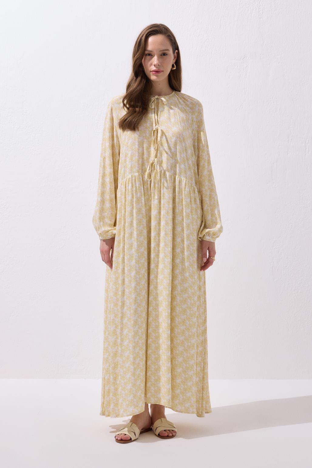فستان فلور فيسكوز طويل مربوط باللون الأصفر