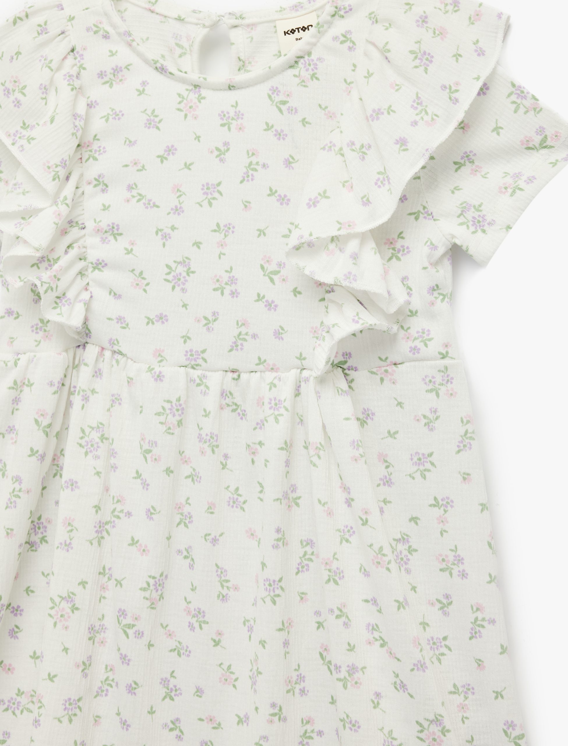 كن أول من يقيم “فستان قصير الأكمام مزخرف بالزهور مع تفاصيل التجعيد ورقبة القارب”