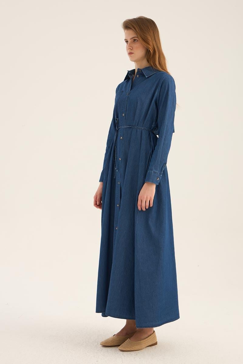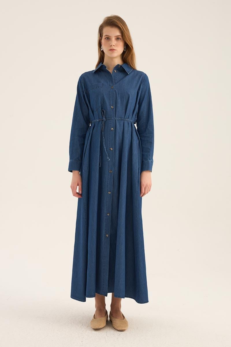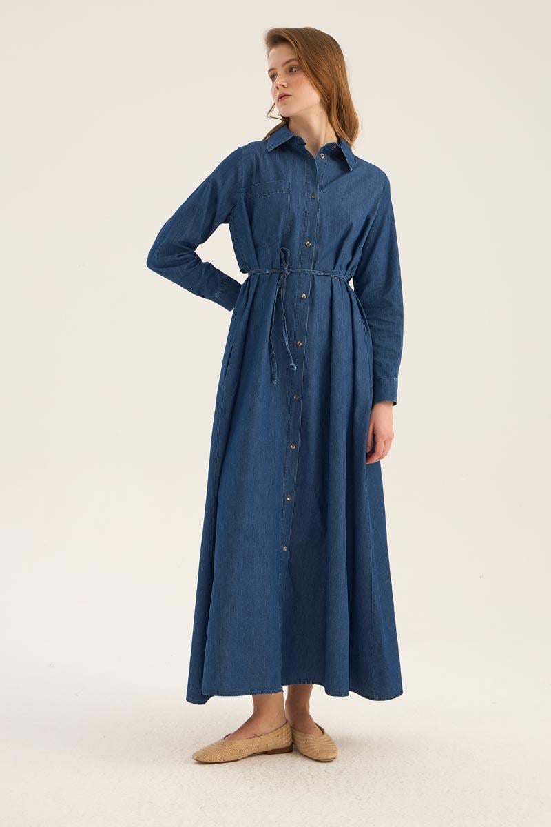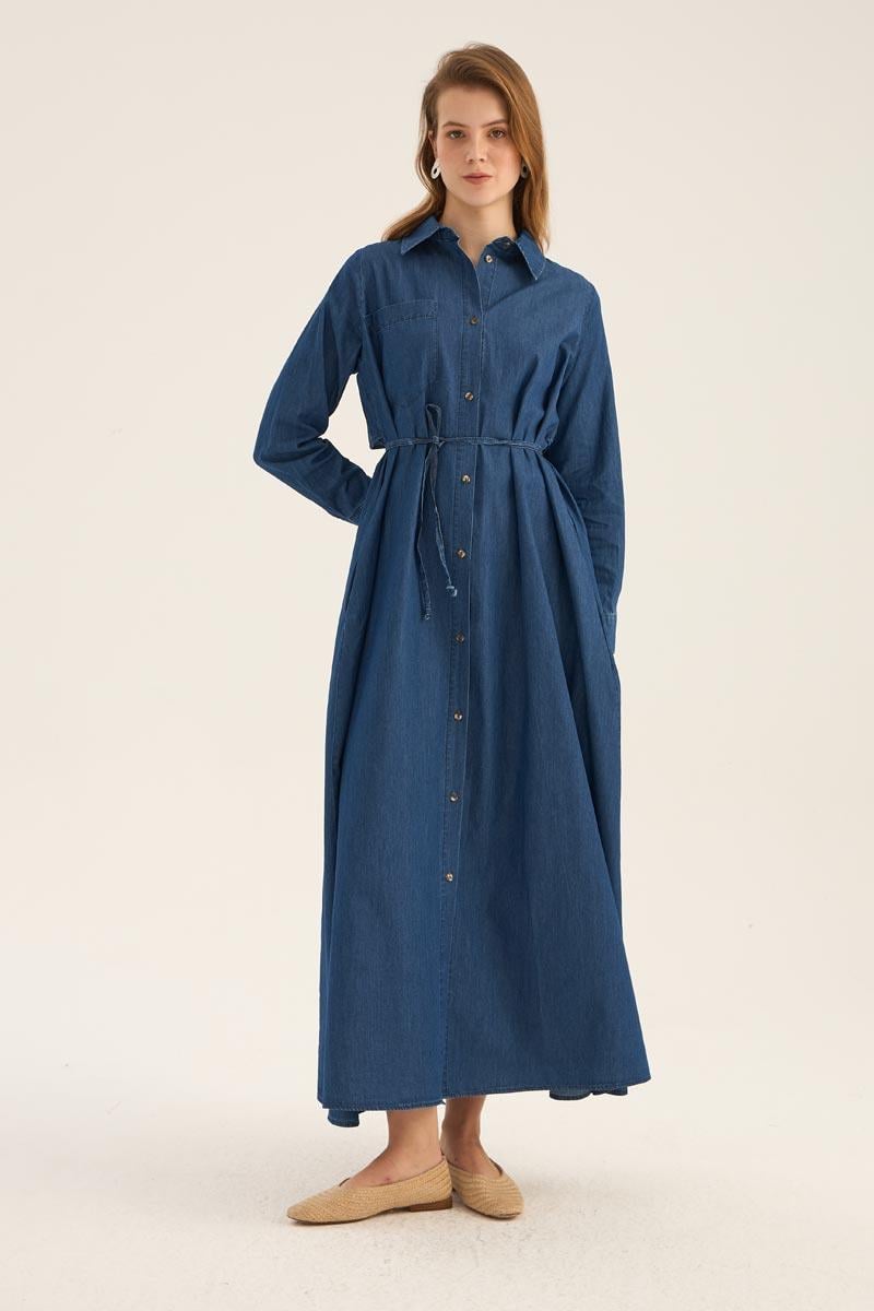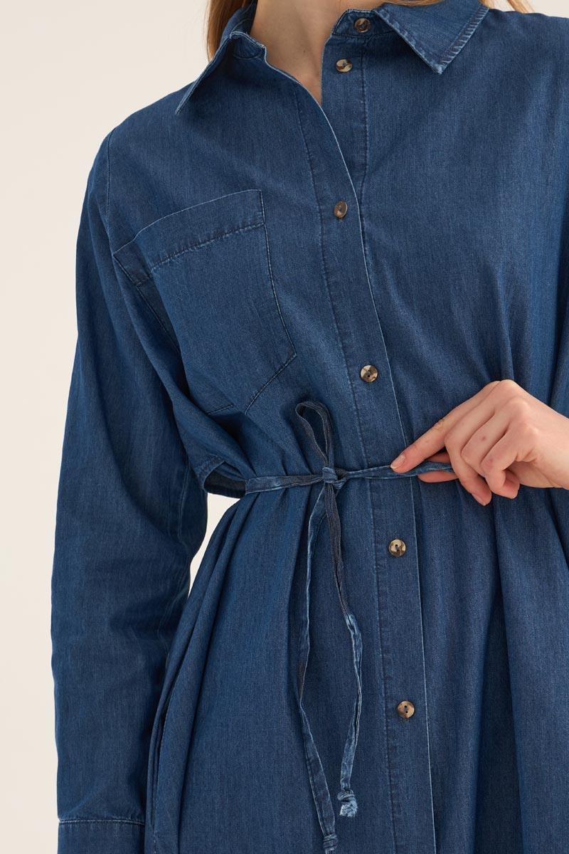 فستان قميص دنيم أزرق داكن