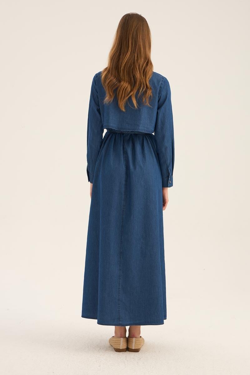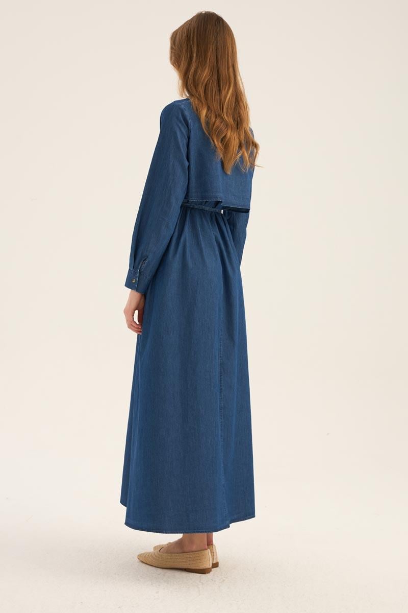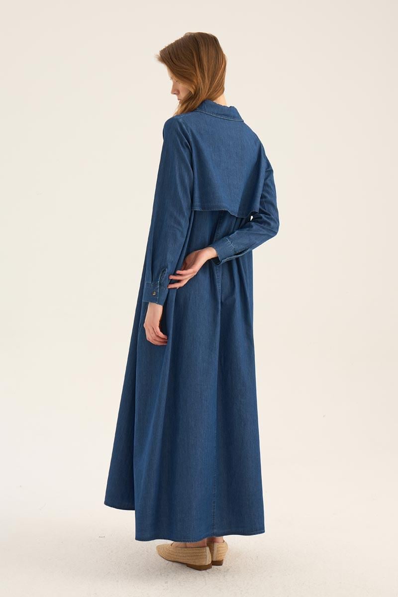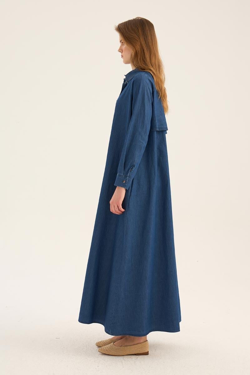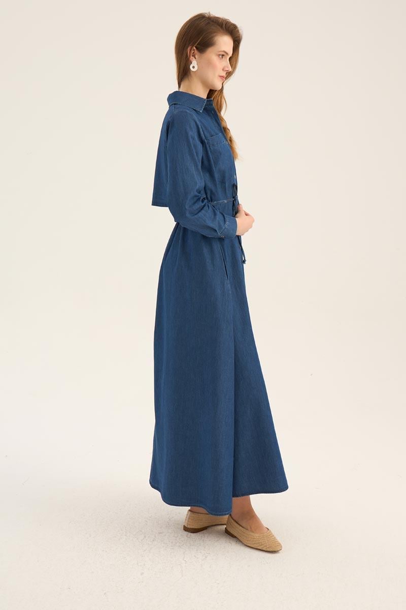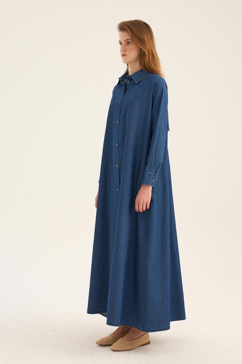 فستان قميص دنيم أزرق داكن