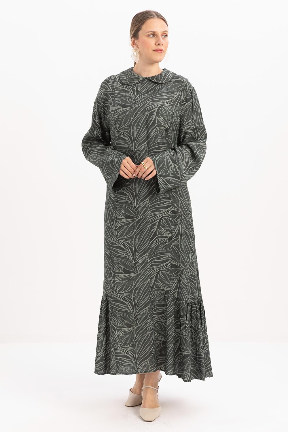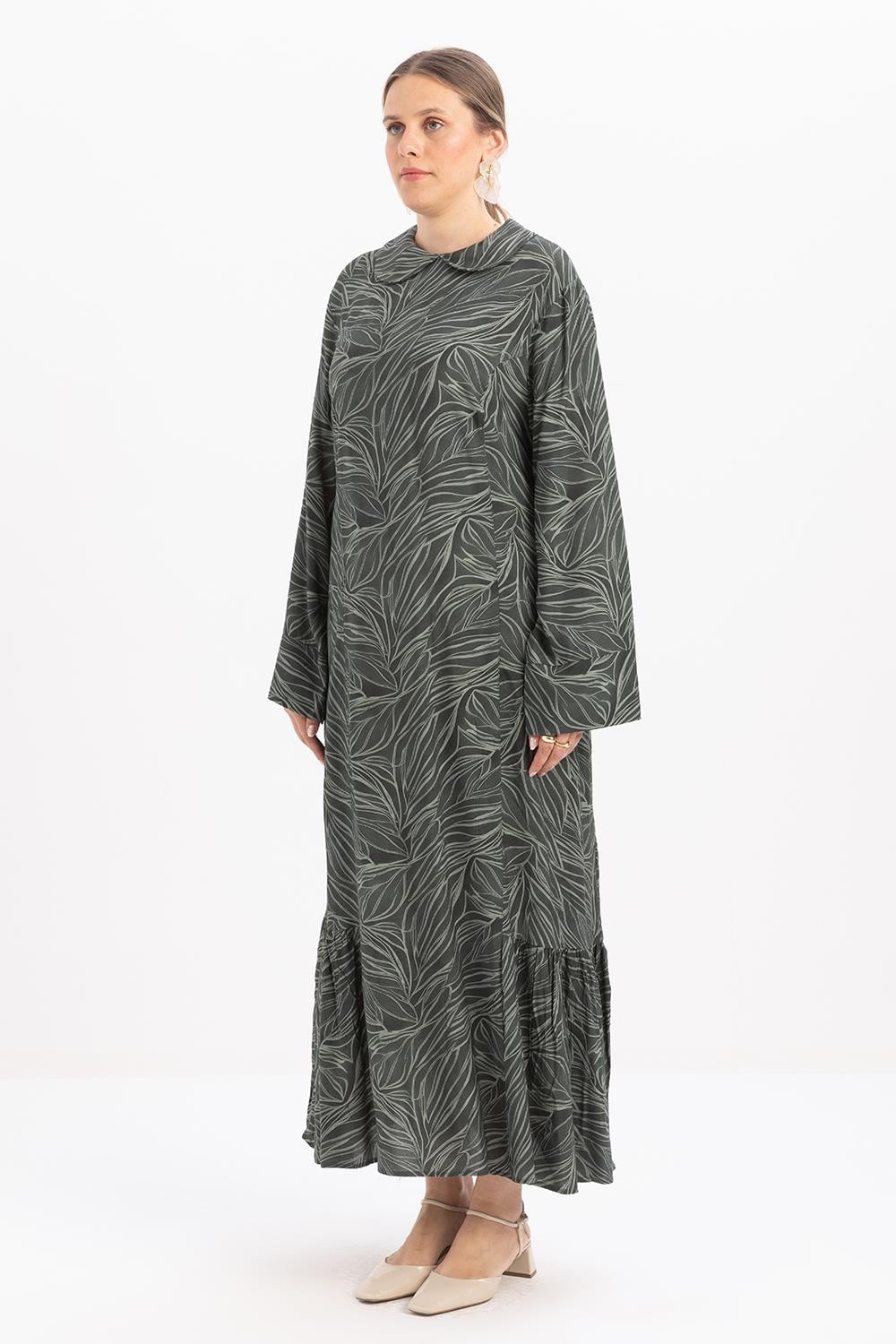 فستان كبير الحجم مطبوع باللون الأخضر مع حزام