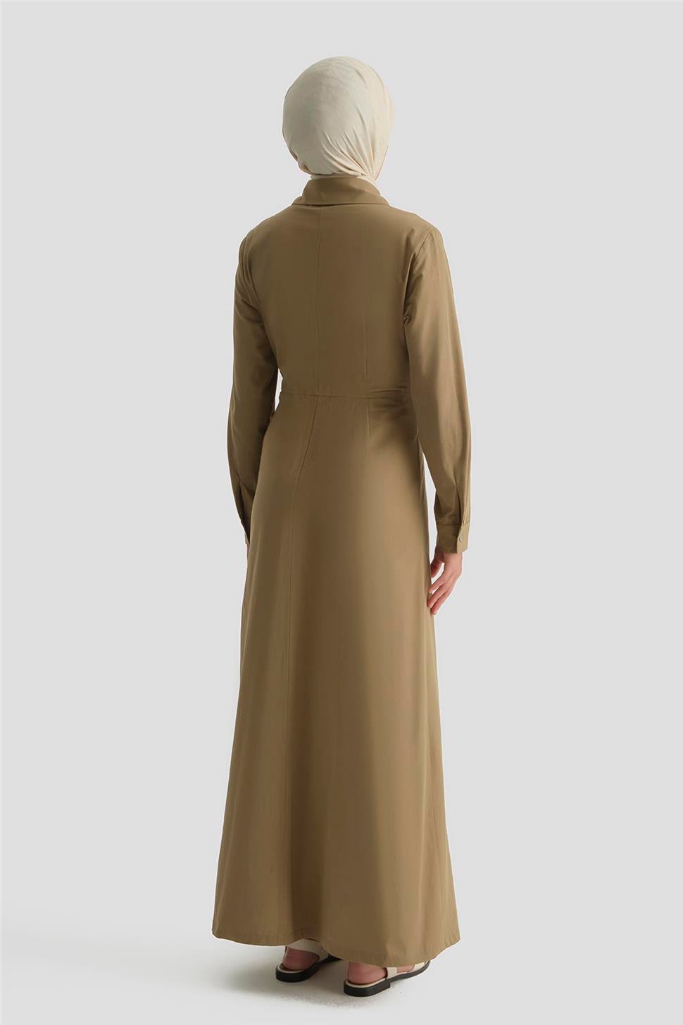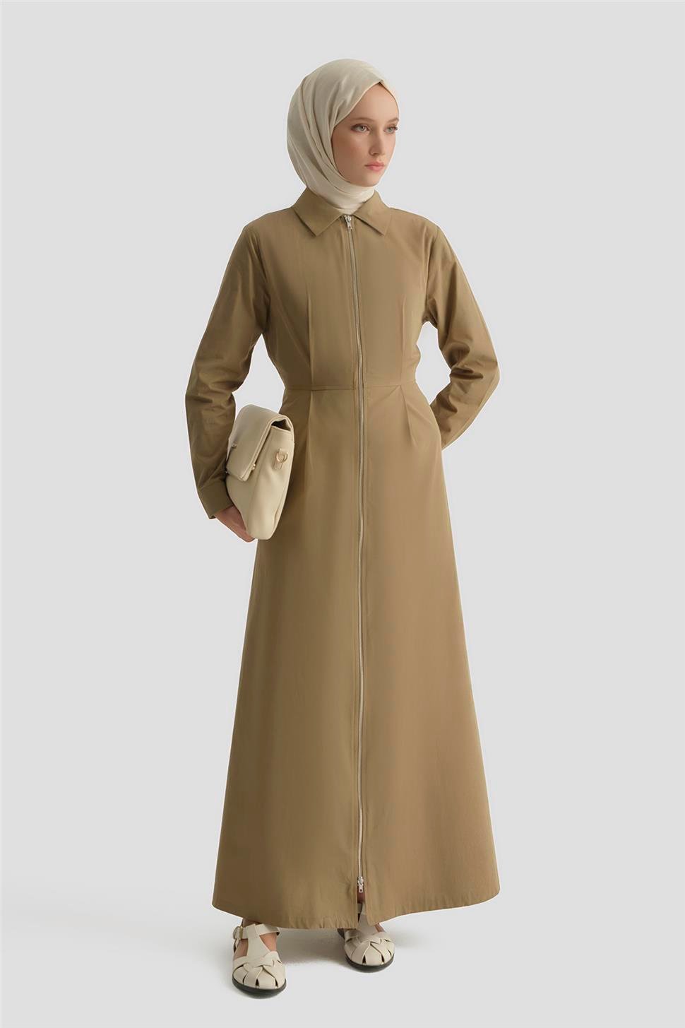تمثل قوية للأناقة الحضرية بتصميمها العصري وقصتها الأنيقة. تفاصيل السحاب الكامل في الأمام توفر استخداماً عملياً مع إضافة طابع ديناميكي للتصميم. القصة الضيقة المحكمة تمنح وقفة أنثوية، بينما يكمل طولها الأناقة بطريقة متوازنة.
