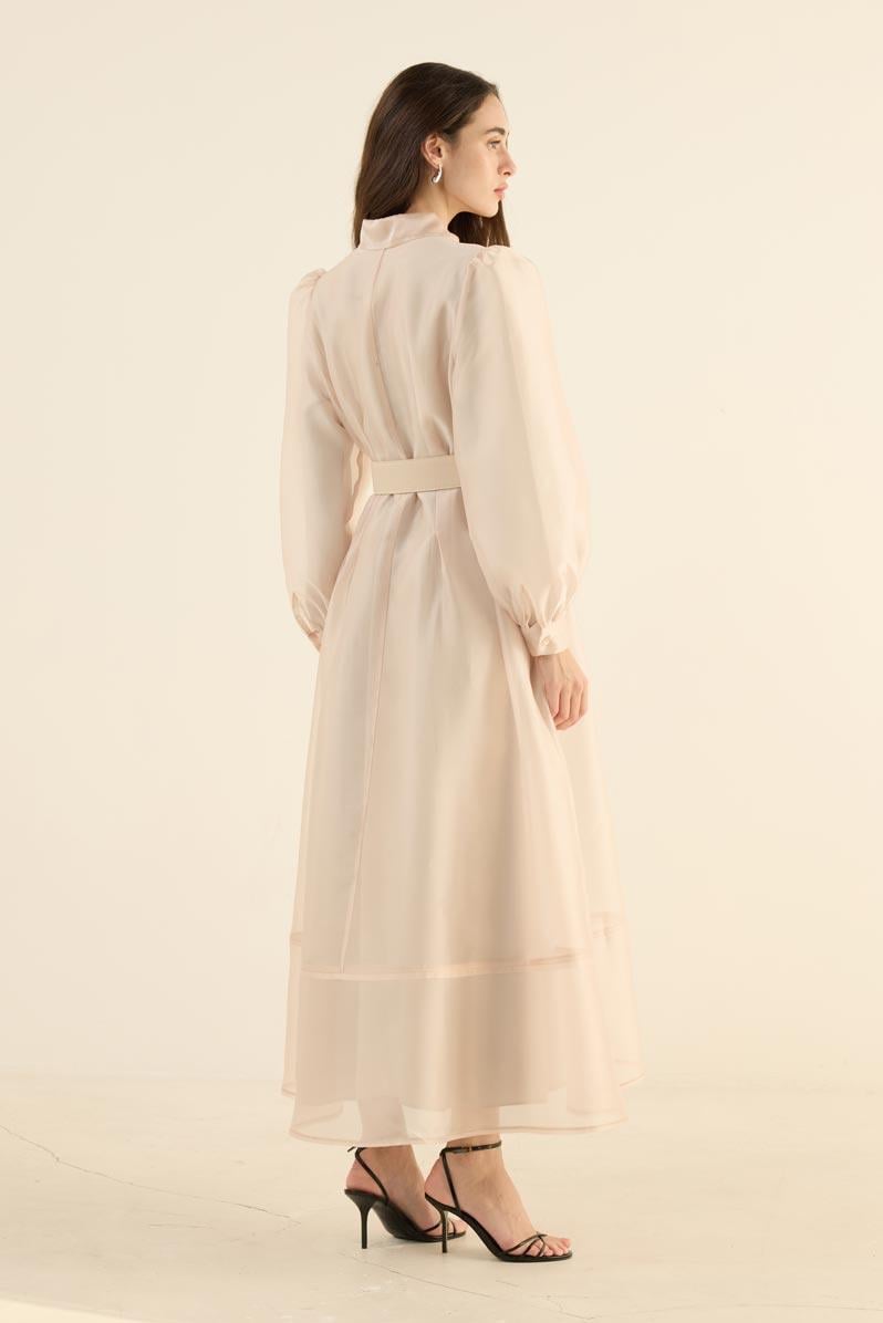 فستان كريب بأكمام من الشيفون الكريمي