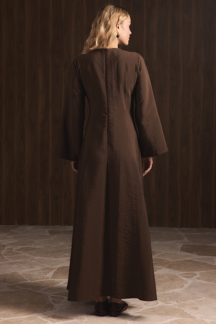فستان كوبرو مزين بدبوس أمامي من زوي – لون القهوة