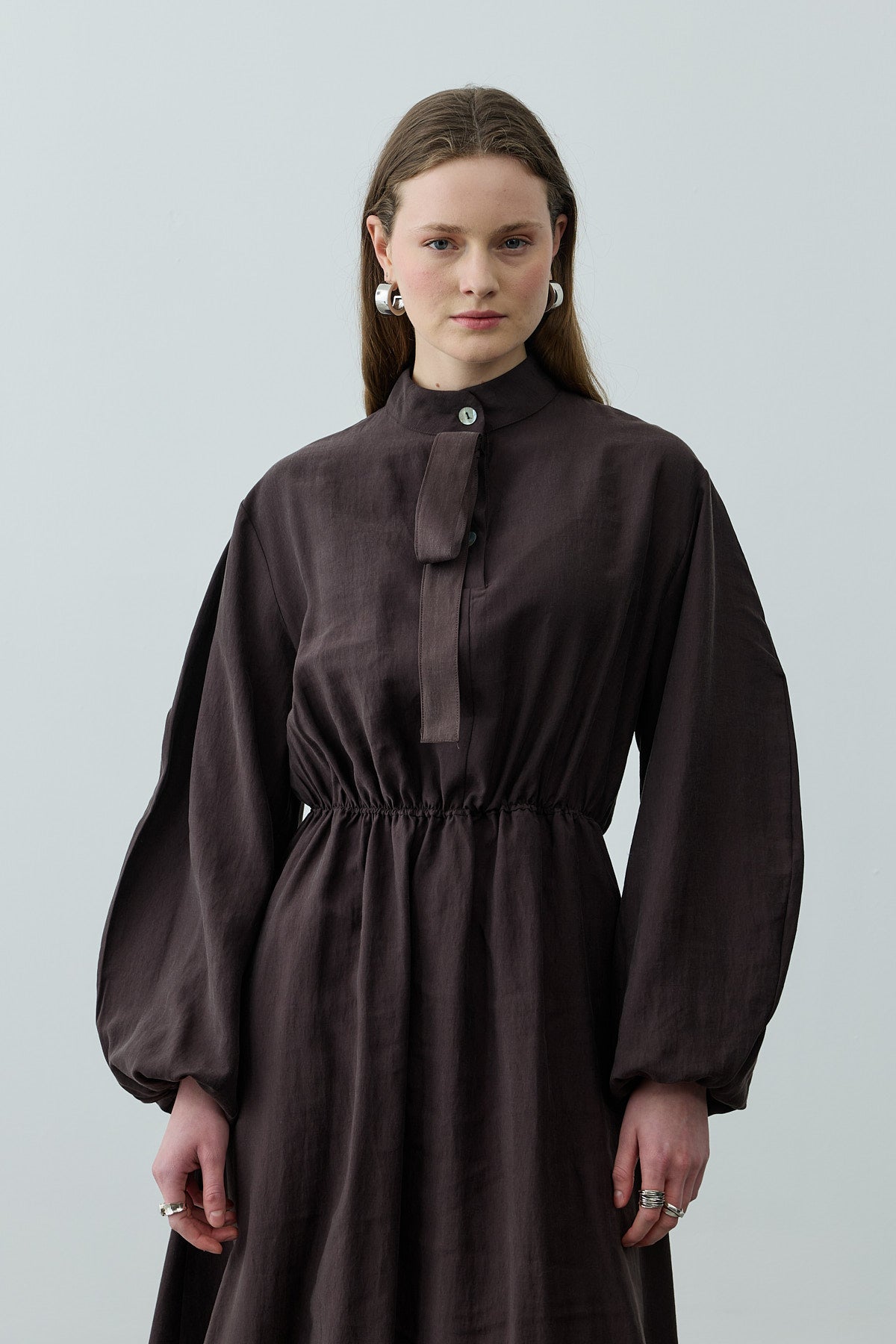 فستان ماكسي بالوشاح بلون القهوة المرّة