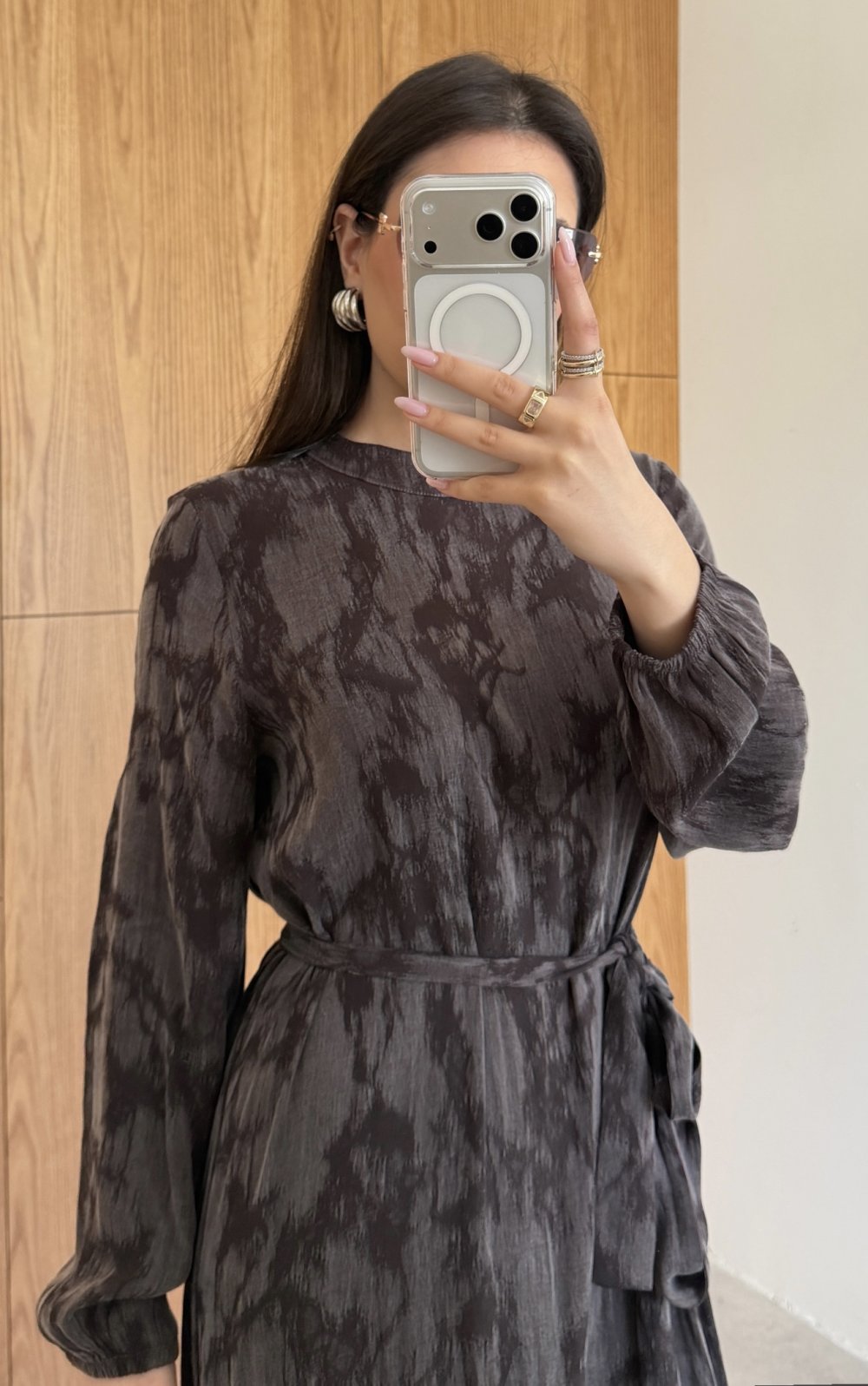 يبرز هذا الفستان الطويل بتصميم أنيق وتفاصيل عصرية، حيث يظهر وقفة مثالية بفضل قماش الترينش المتين والمرن في الوقت نفسه. تضيف التفاصيل المطوية في المقدمة حركة للتصميم، بينما يؤكد خط الخصر مع الحزام على منحنيات الجسم بأناقة. بطوله الكامل وتصميمه البسيط، يقدم خياراً أنيقاً للمناسبات الخاصة وللستايل الحضري.