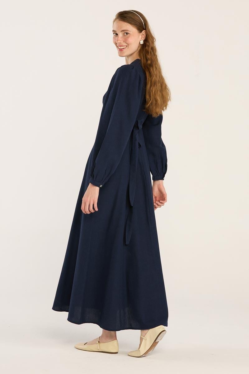 مصمم بتفاصيل مكشكشة عند الخصر والصدر، يقدم هذا الفستان مظهرًا عصريًا وأنثويًا. قماشه المتدفق وقصته المريحة تضمن الراحة طوال اليوم، بينما تصميمه الأنيق يجعله مناسبًا لكل شيء من المناسبات الخاصة إلى الملابس اليومية.