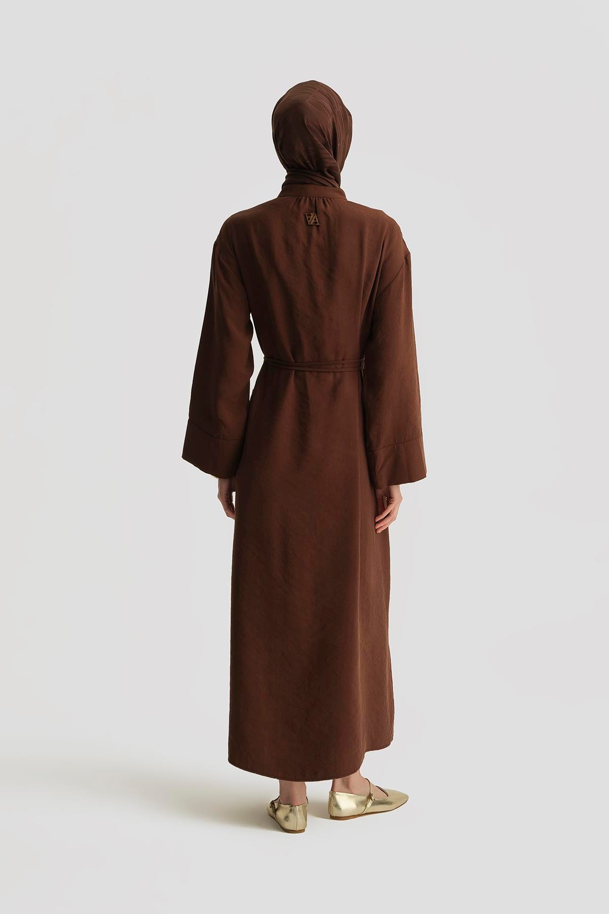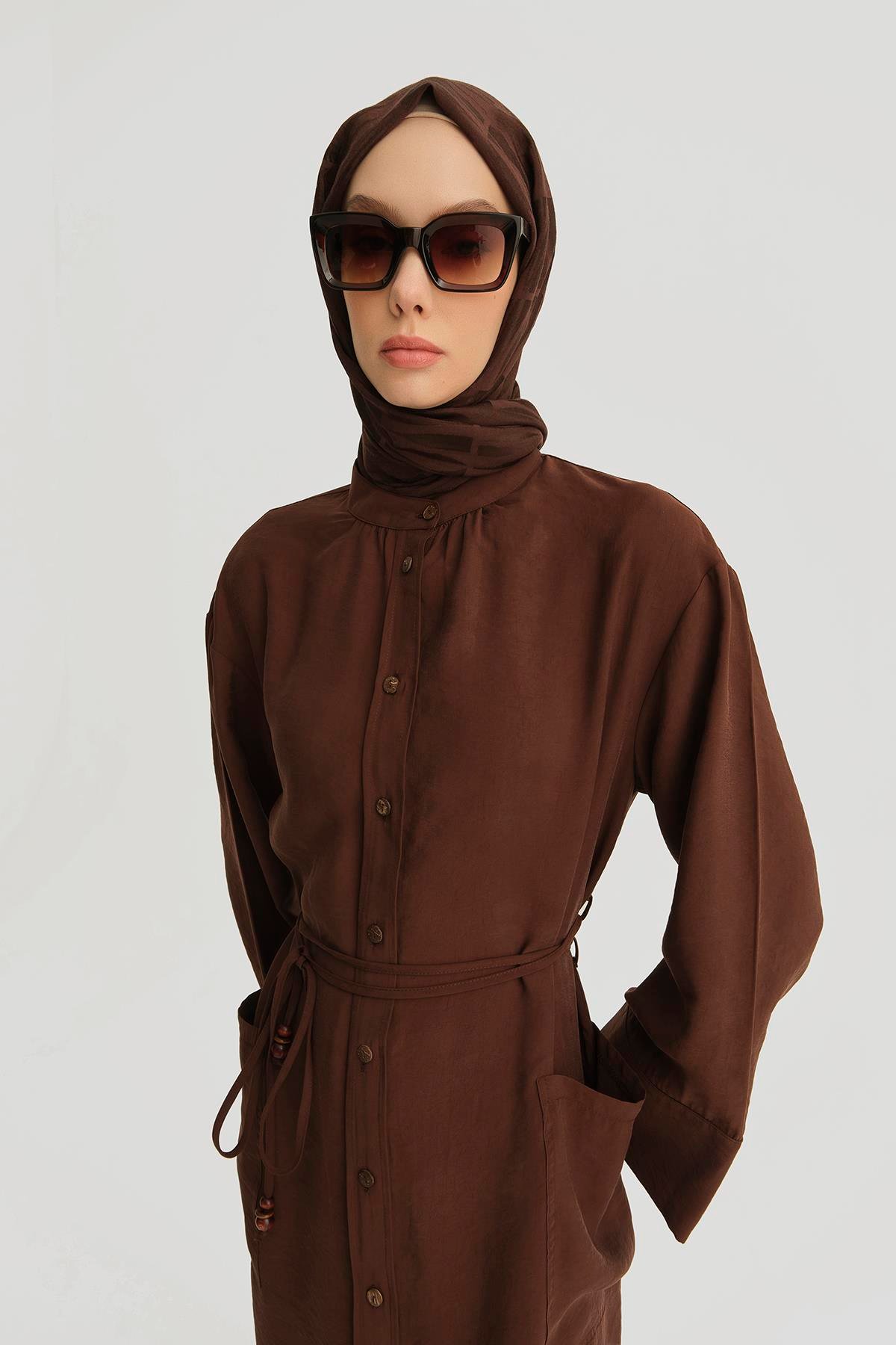 فستان من المودال بتفاصيل ربط بلون القهوة