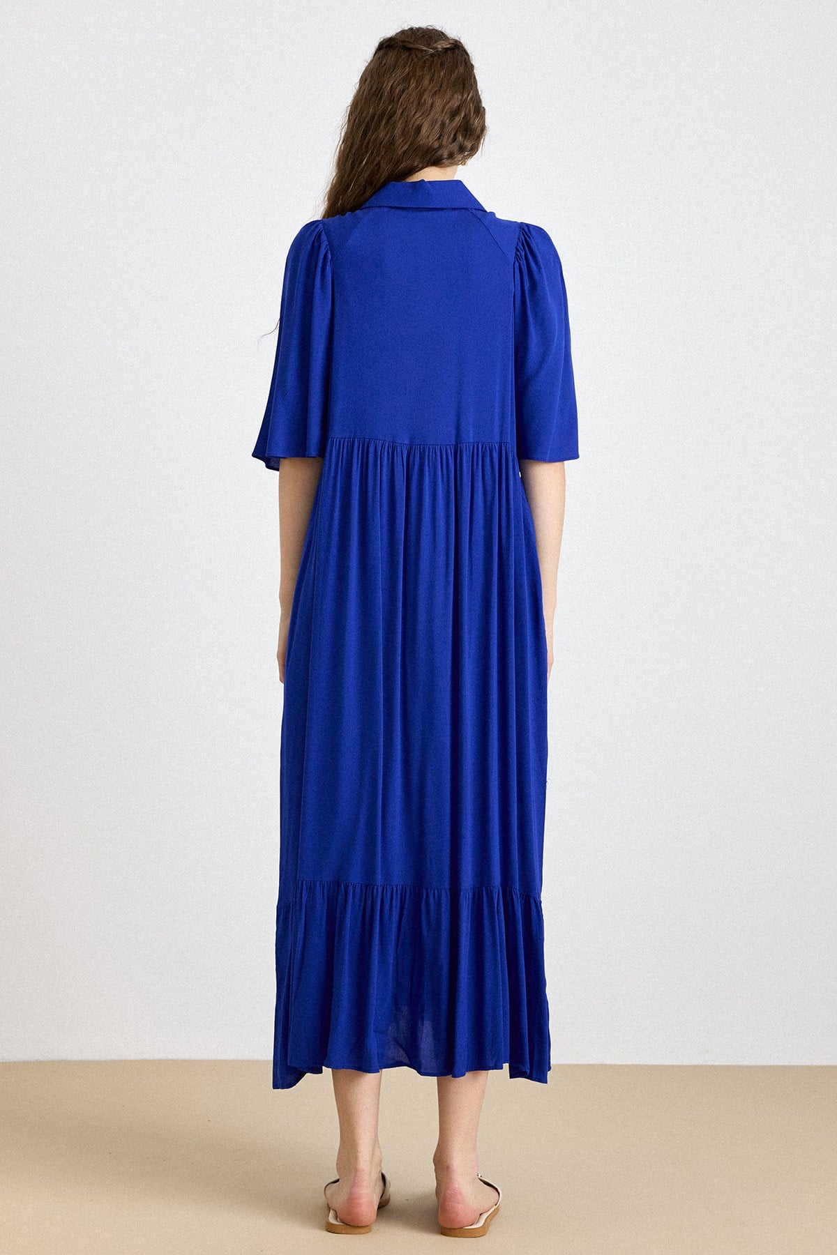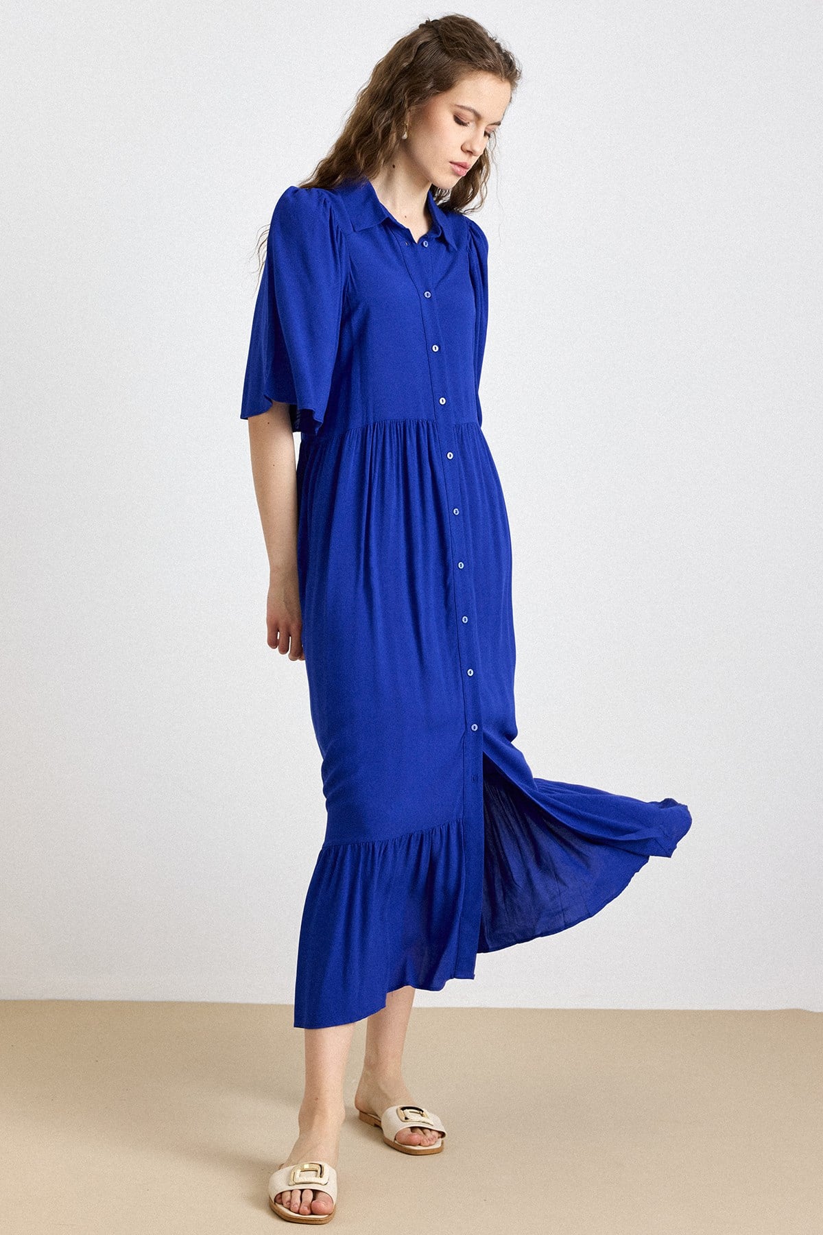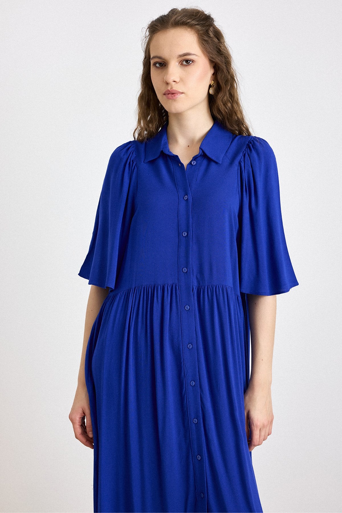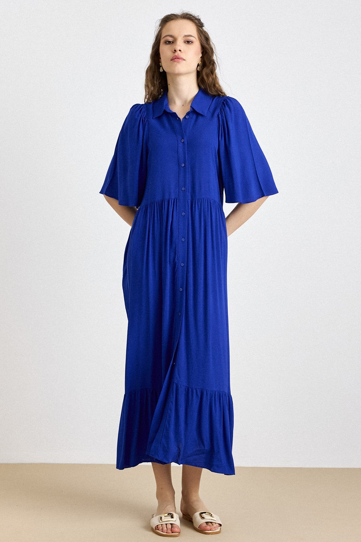 فستان ناعم بنصف كم بتفاصيل مجعّدة SAKS 9418-E