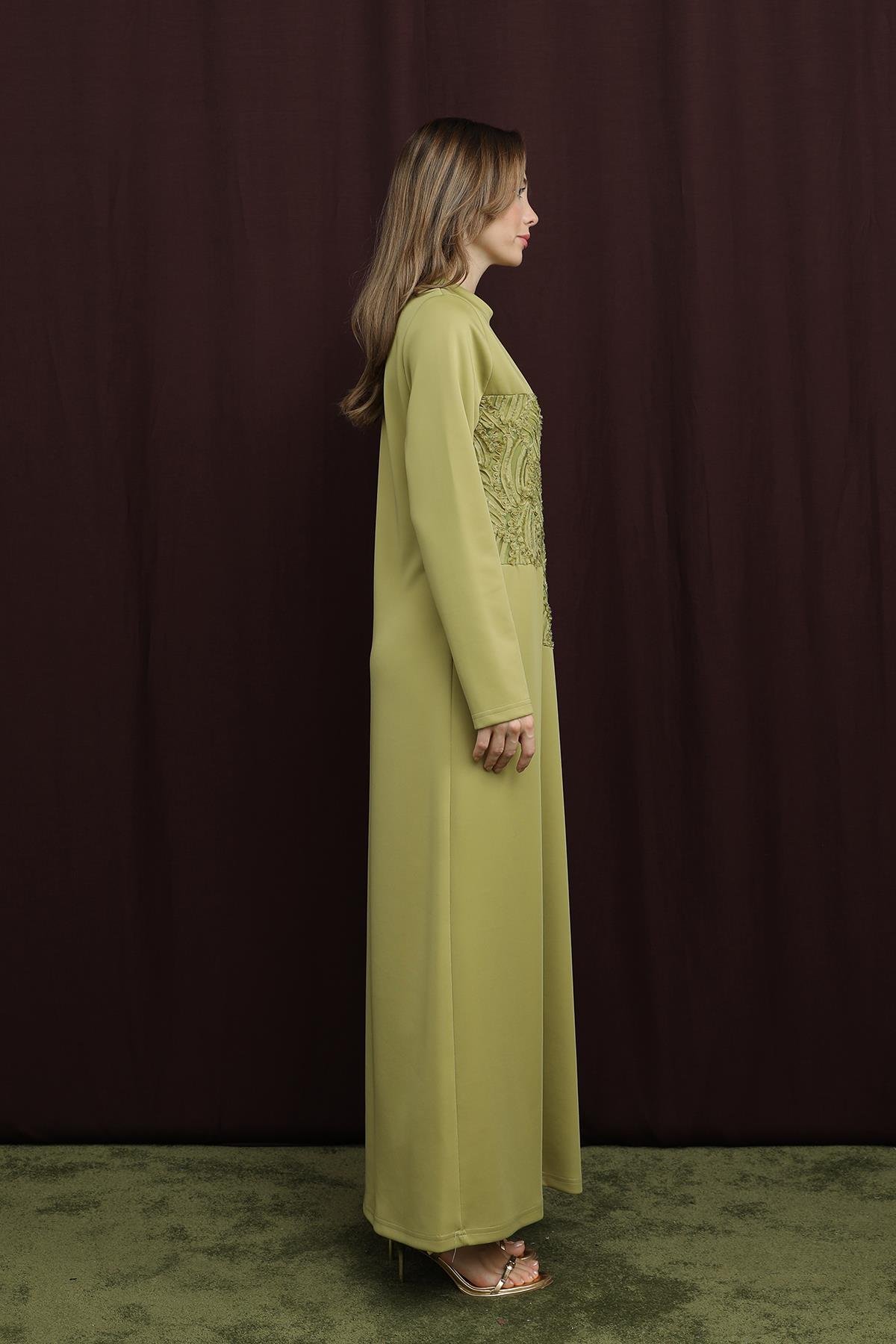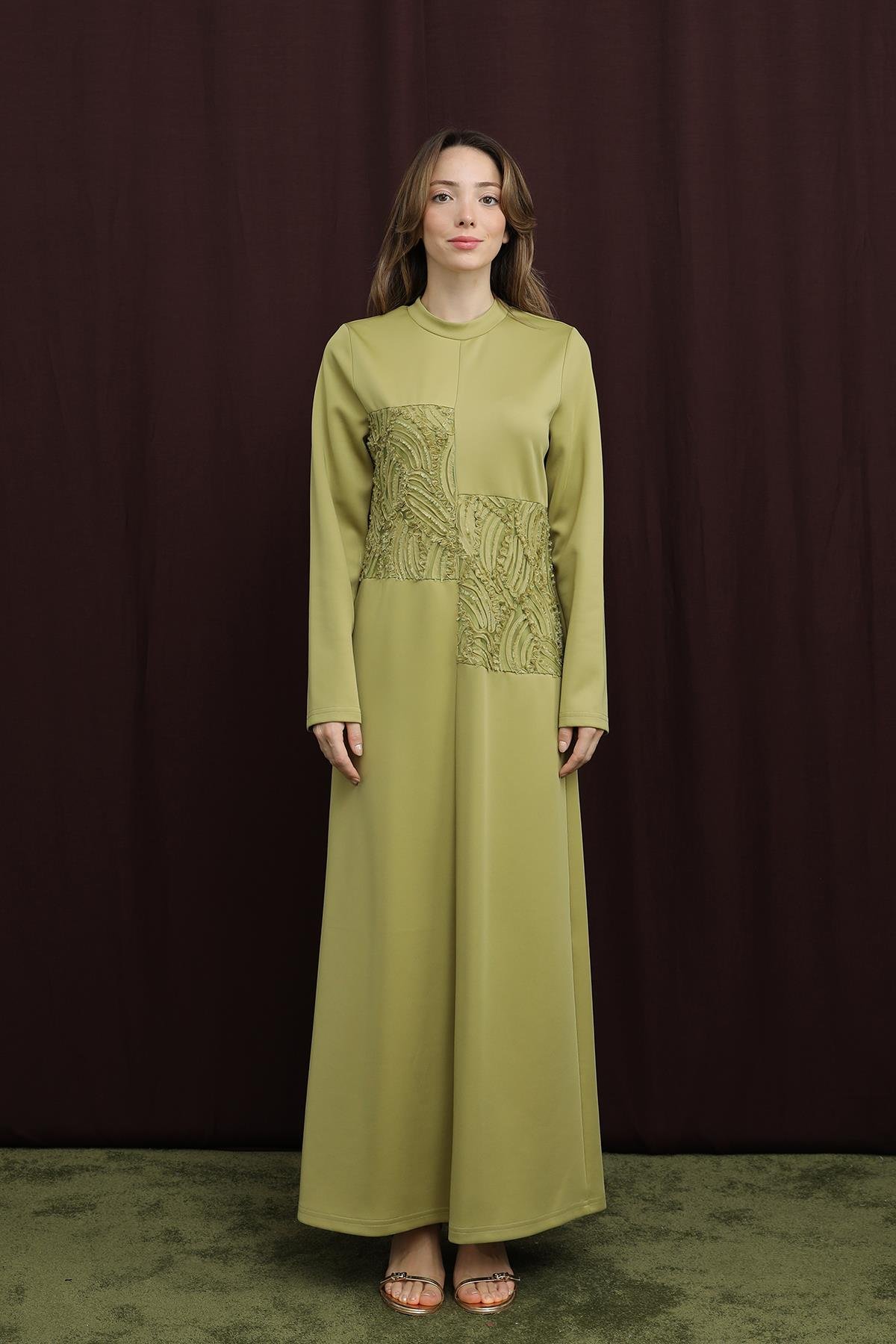 فستان نسائي بتفاصيل دانتيل – 12653ELB – لون زيتوني