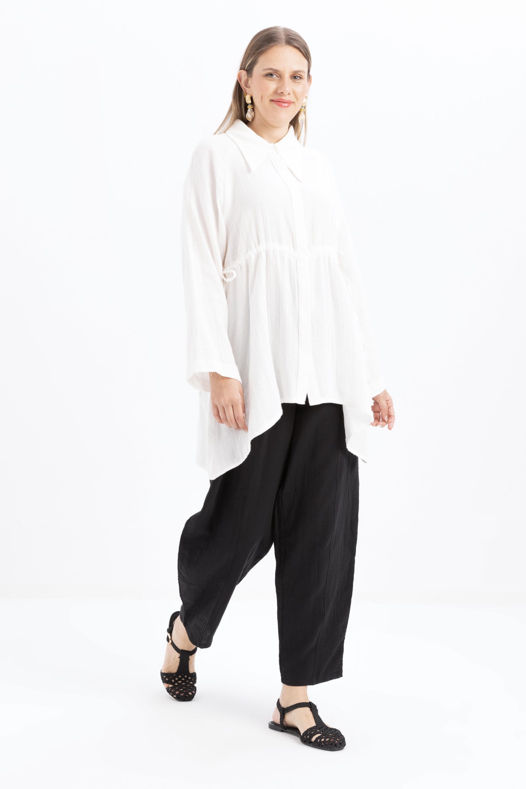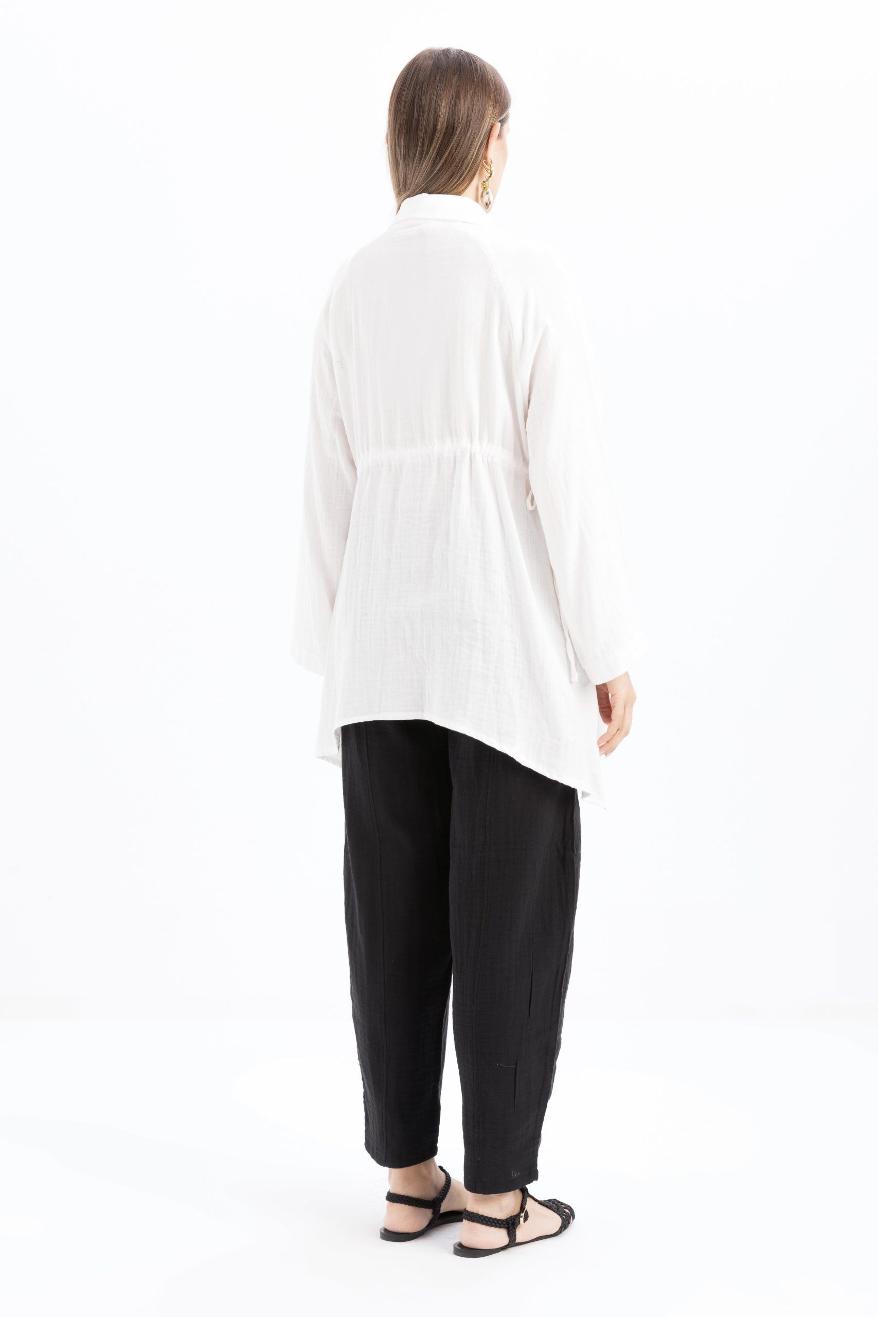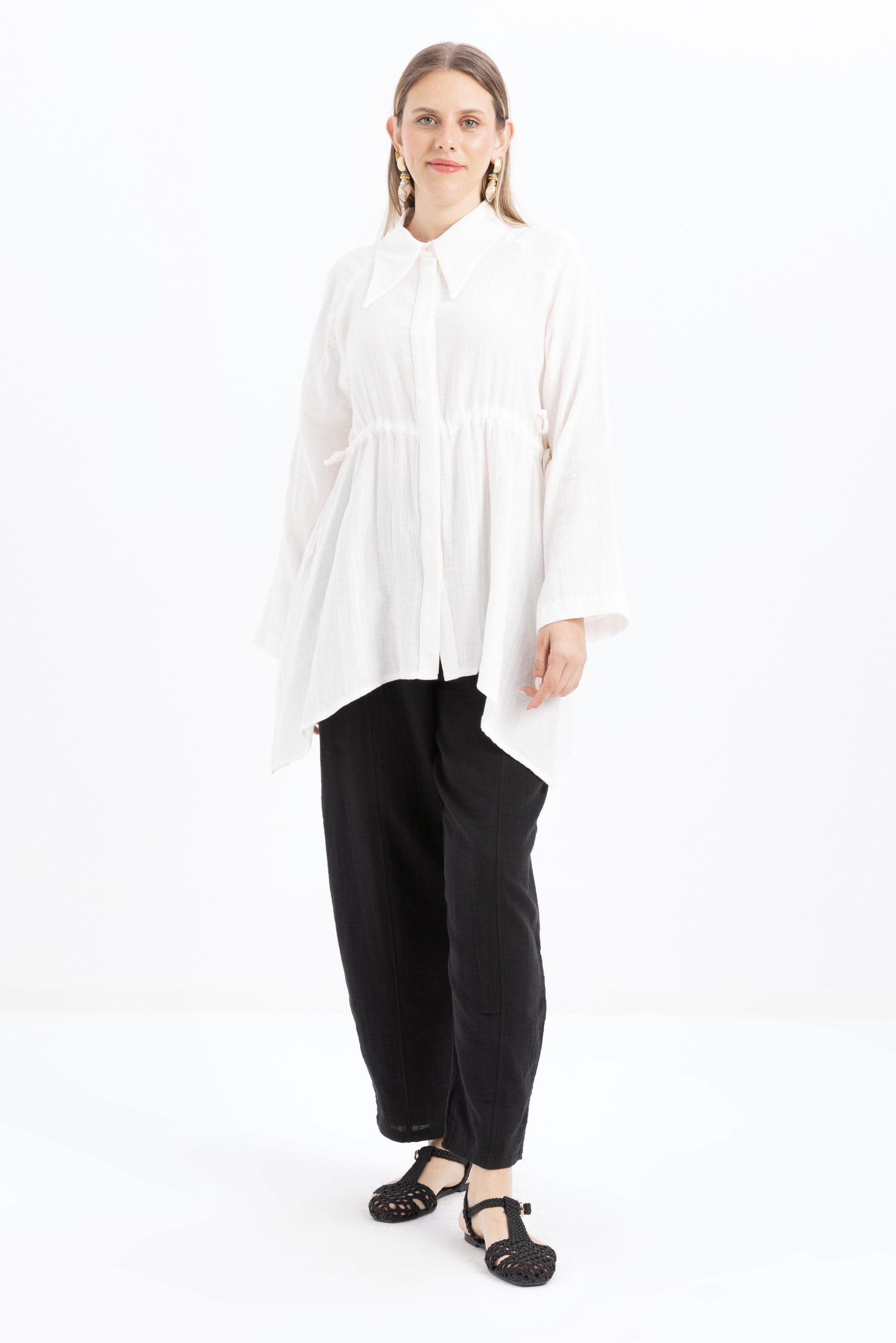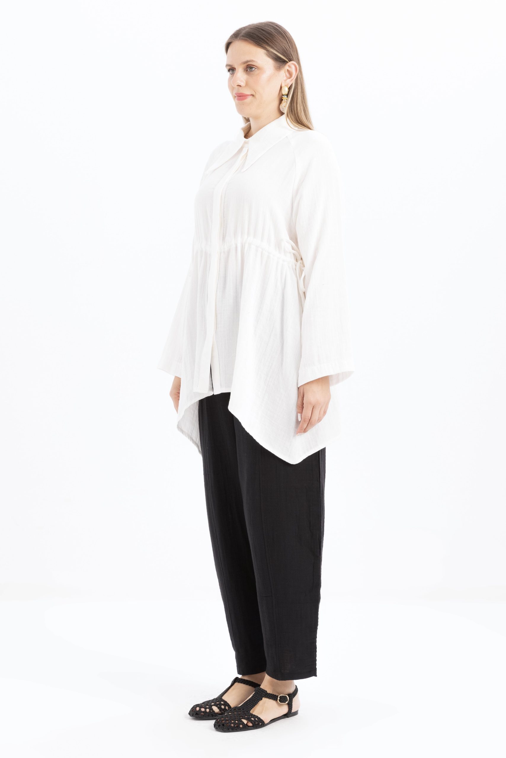 قميص أبيض غير متماثل بأزرار