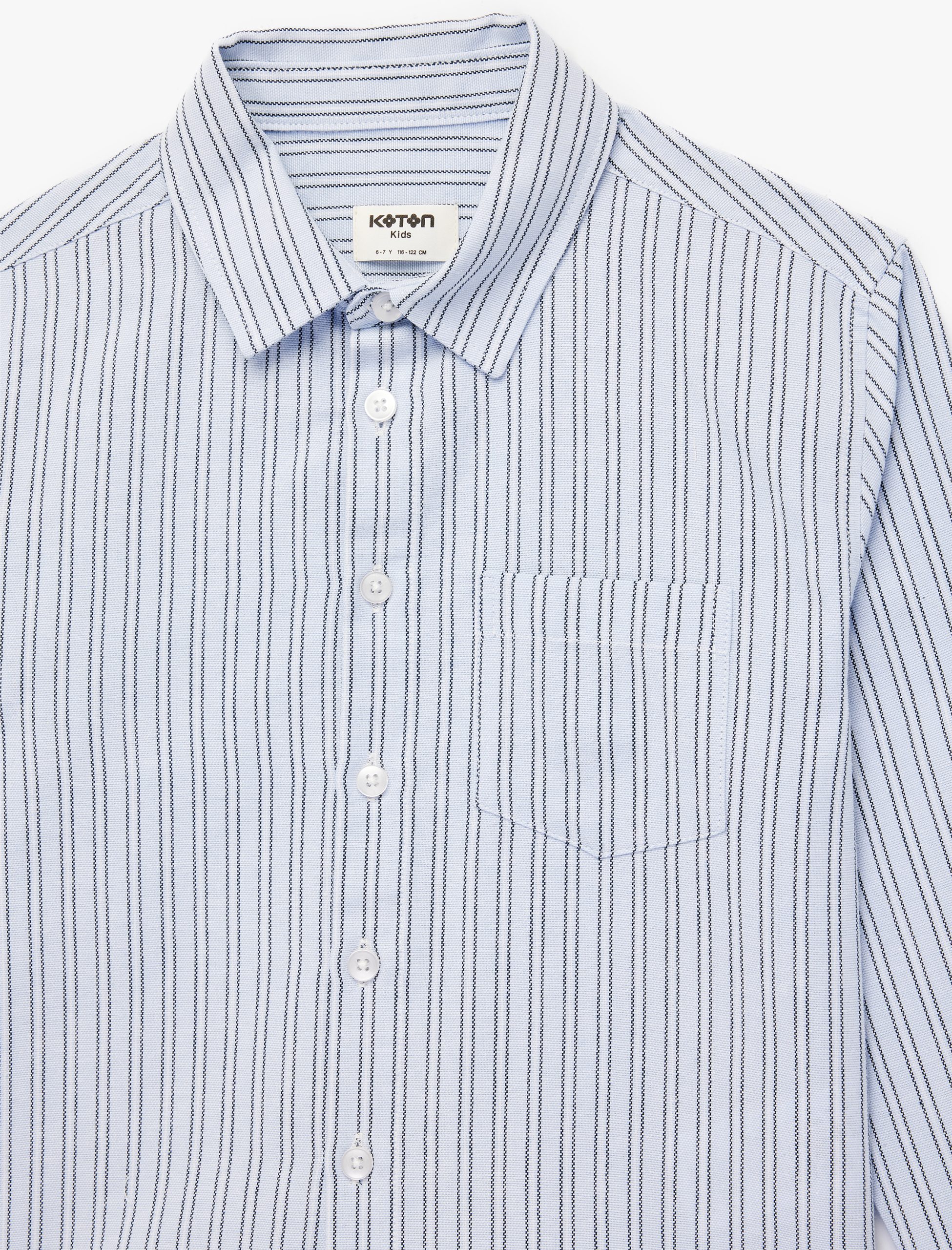 قميص أطفال أولاد قطني بأكمام طويلة وأزرار وجيب واحد مخطط