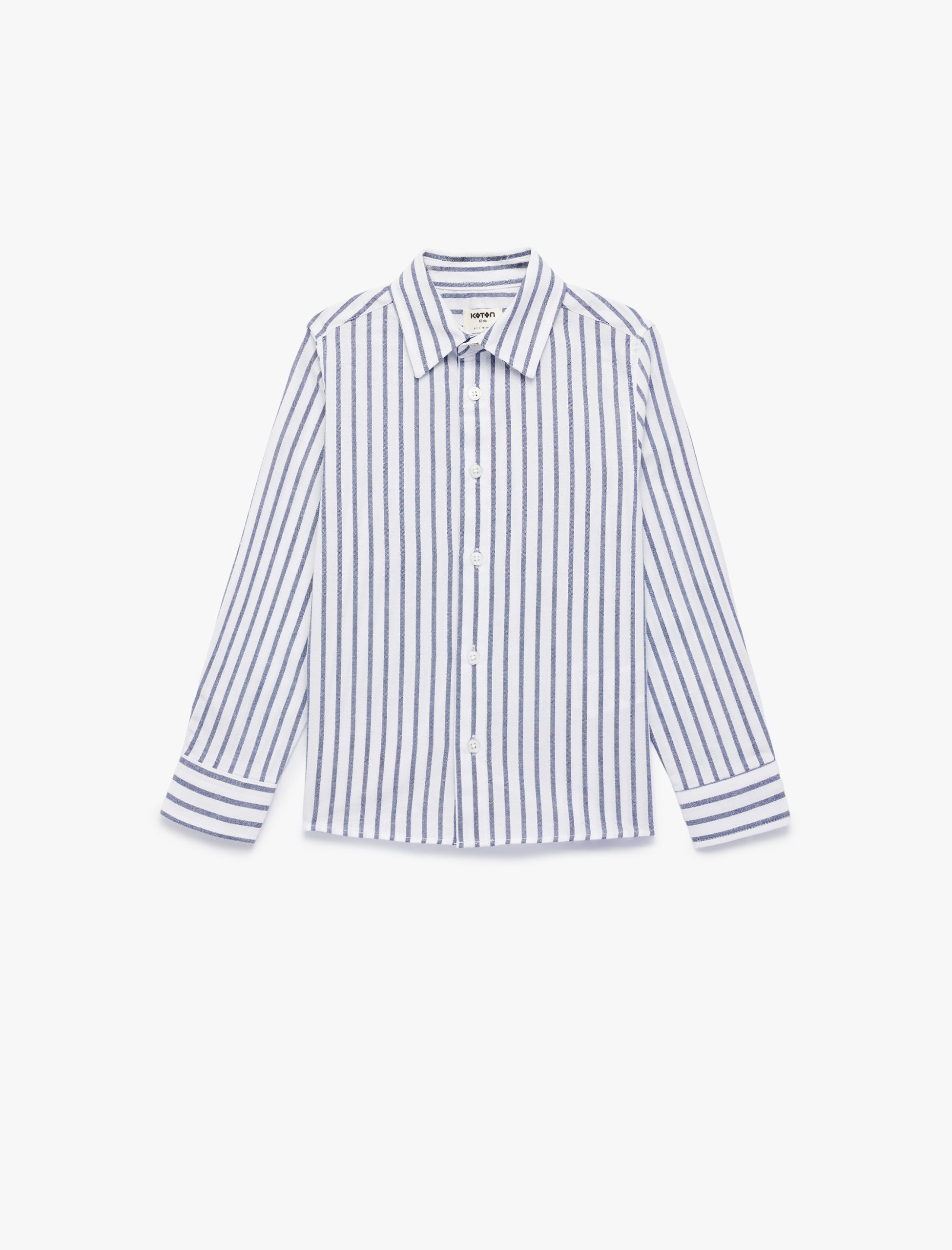 قميص أولاد قطني بأزرار وأكمام طويلة وطوق كلاسيكي ومخطط