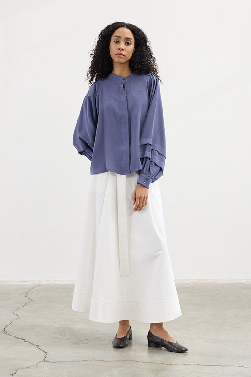 قميص إنديغو بأكمام طبقات
