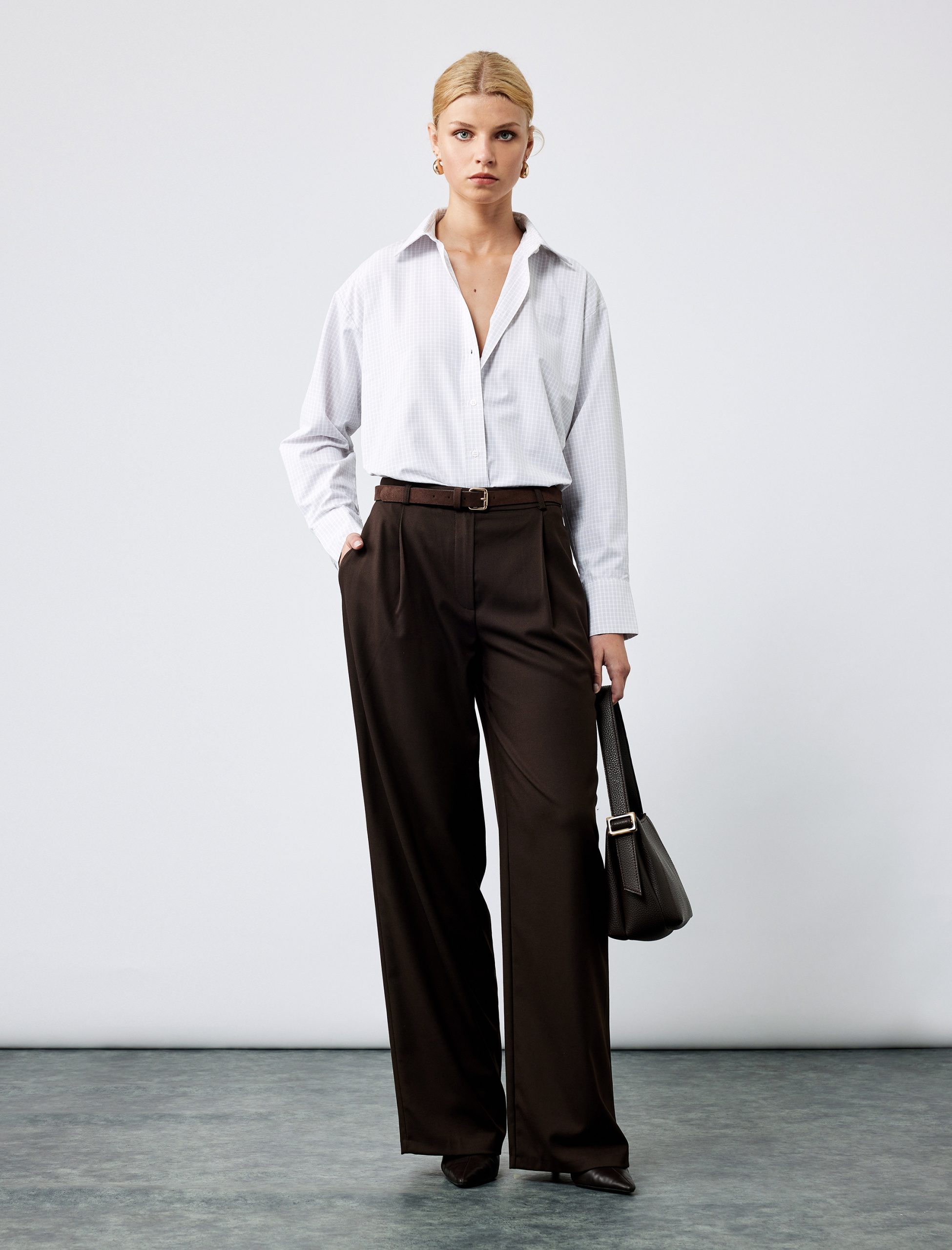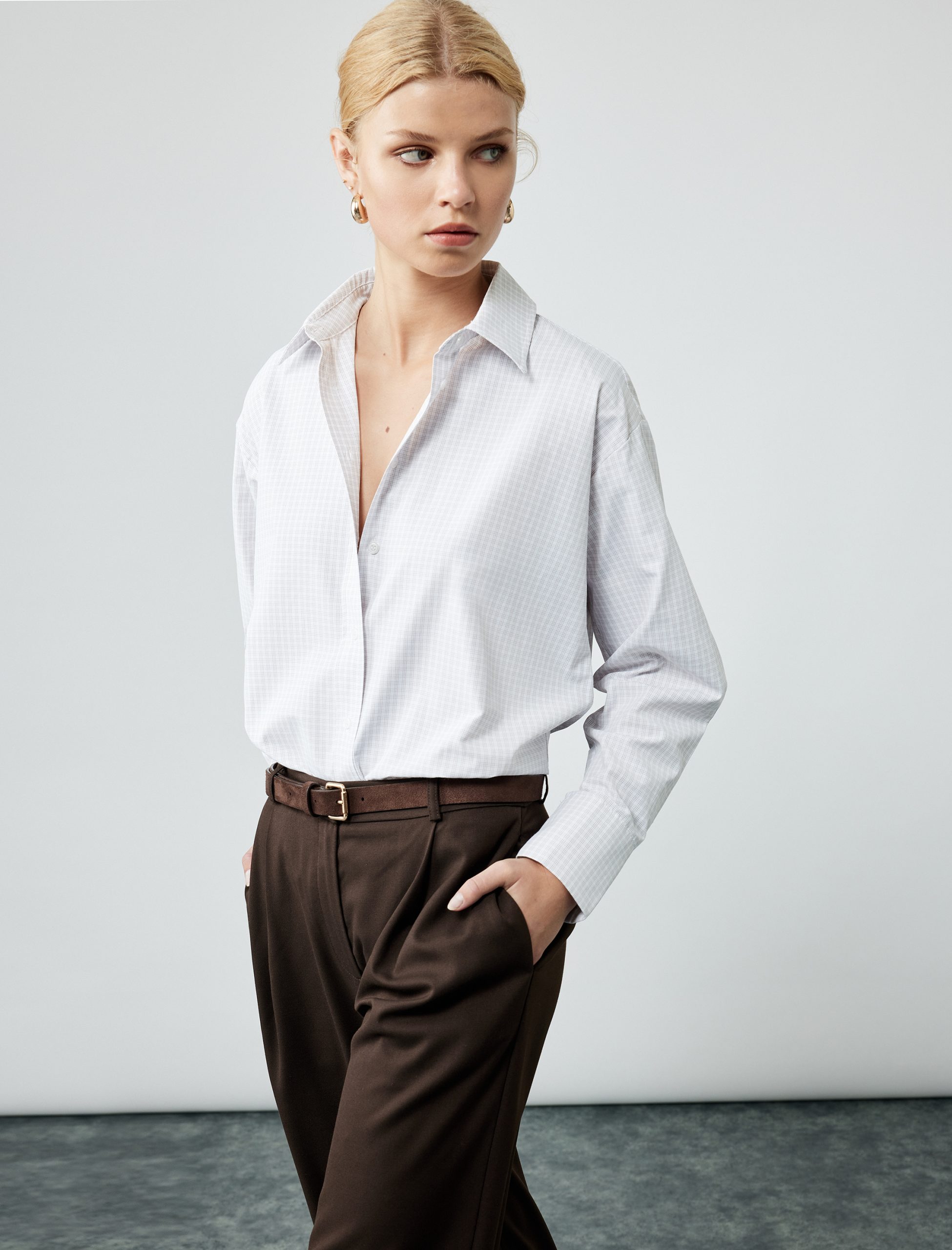 قميص بوبلين طويل الأكمان ذو ياقة كلاسيكية مريح القص