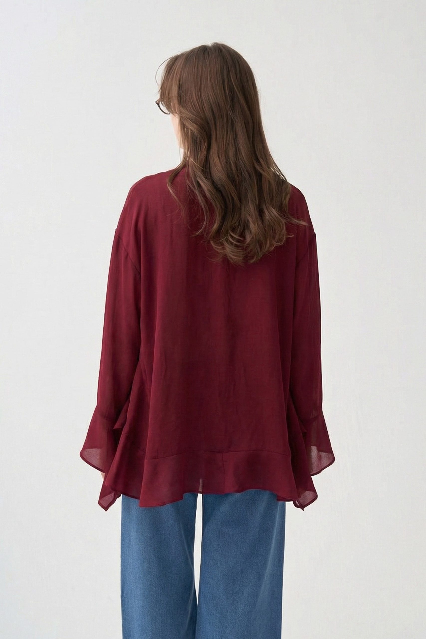 احصلي على مظهر أنيق مع قميص البورجوندي بتفاصيل الكشكشة، المصمم خصيصاً لمن يبحثن عن الأناقة في التفاصيل. مثالي للارتداء اليومي والتركيبات الخاصة.