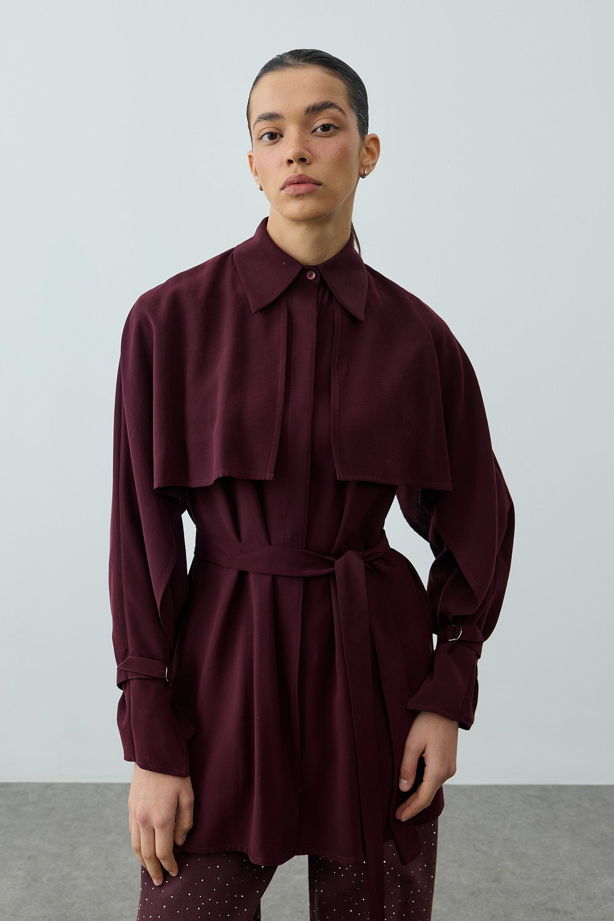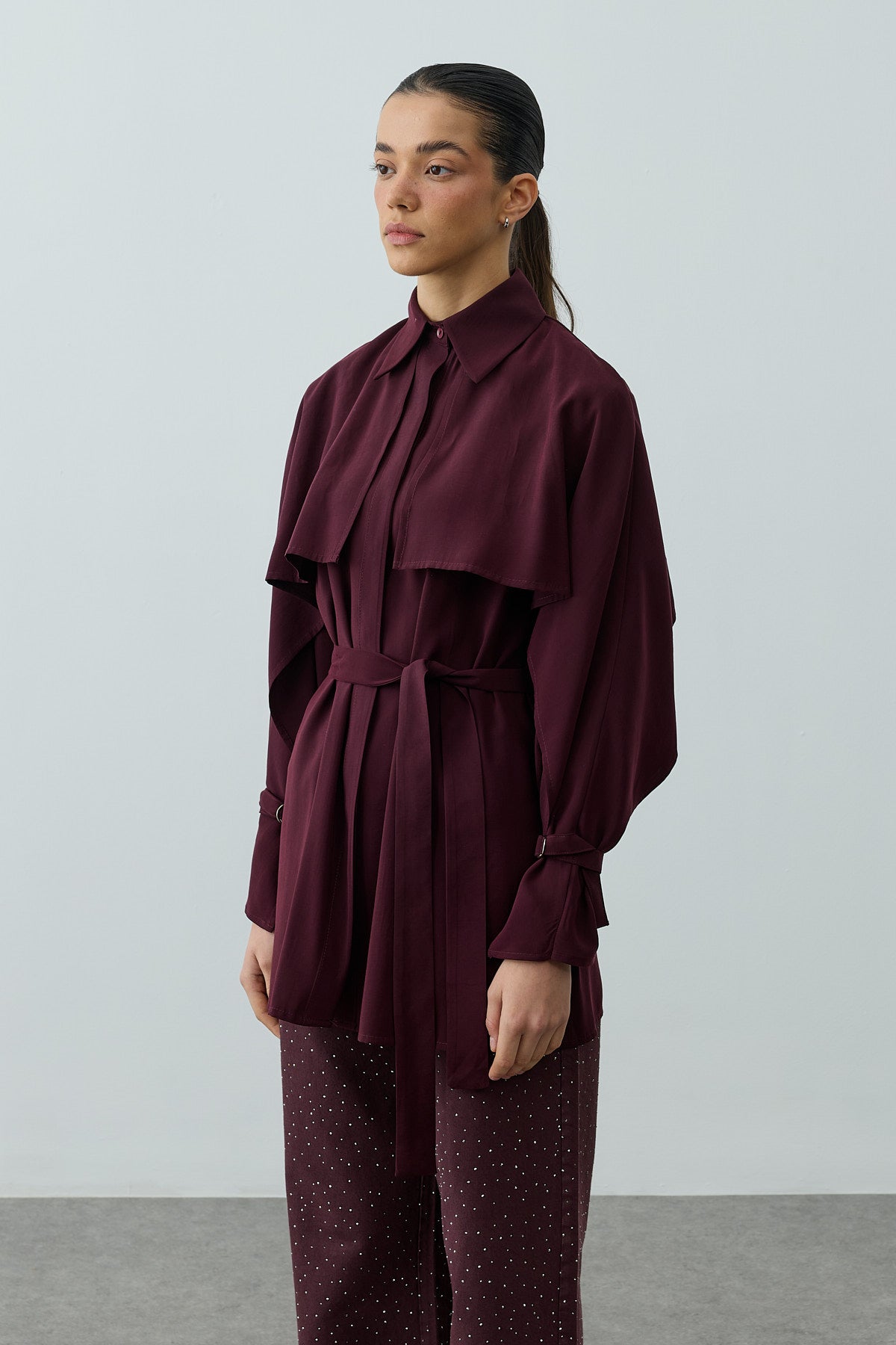 تونيك بياقة وشاح وتفاصيل تجميع – بني