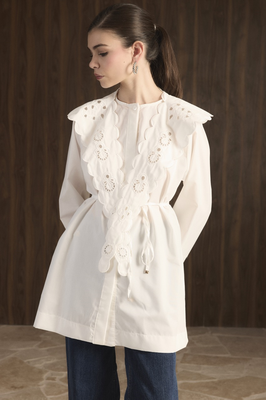 قميص داكْرون مطرّز عند الياقة – لون البيج الفاتح