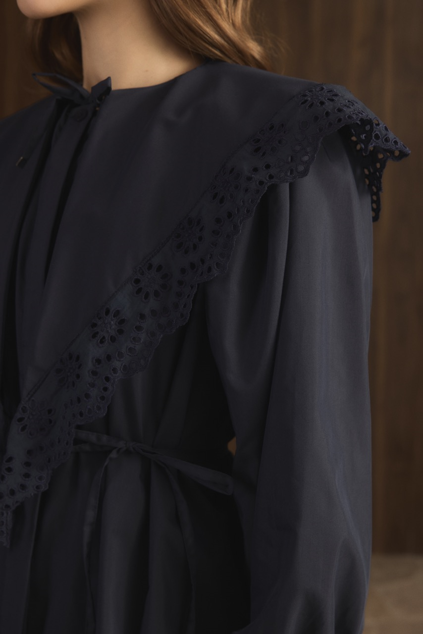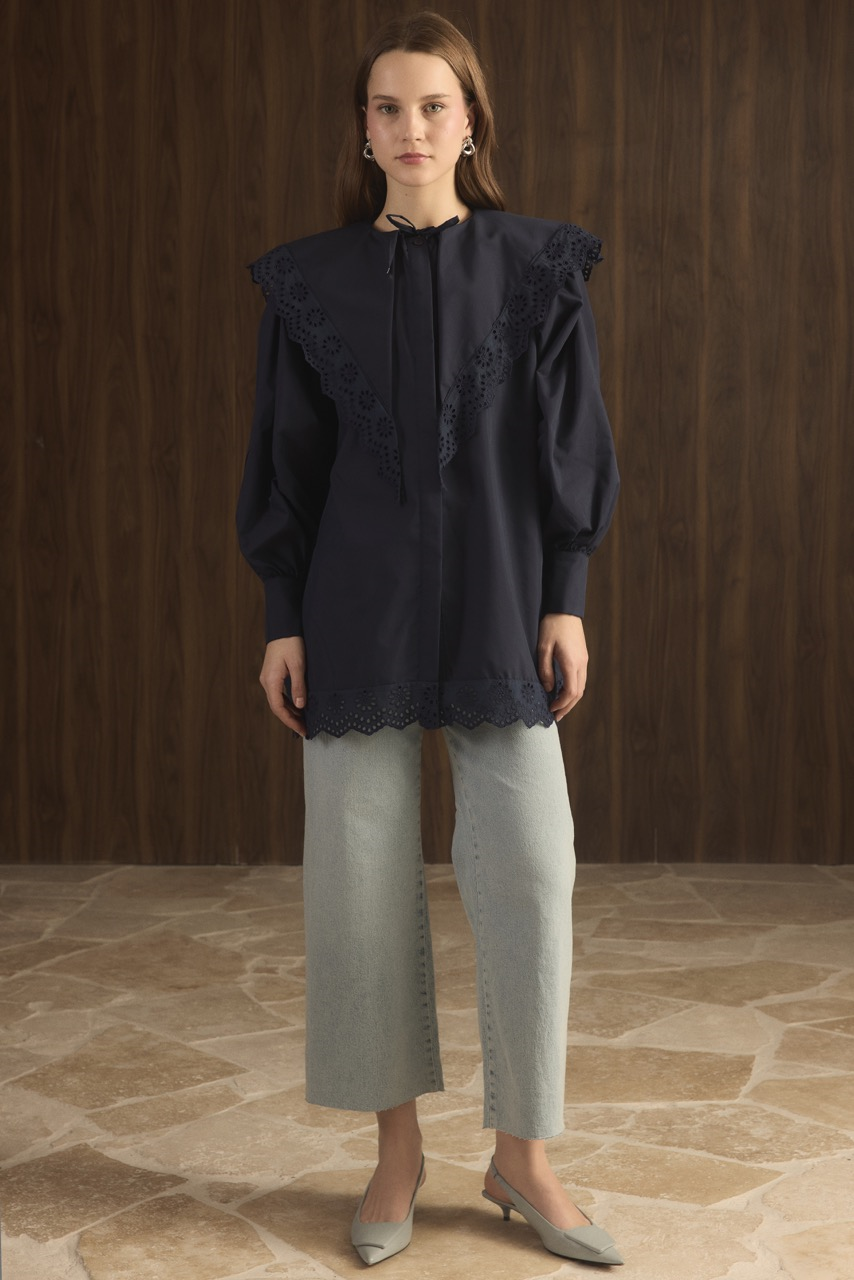 قميص دانكرون دانتيل ذو ياقة عريضة – أزرق بحري